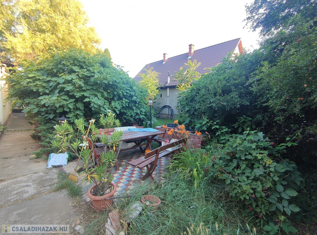 A házat körülvevő kert hatalmas, melyben még rengeteg lehetőség rejlik. Több fa, gyümölcsfa is található a területen, ami megfelelő árnyékolást is biztosít.