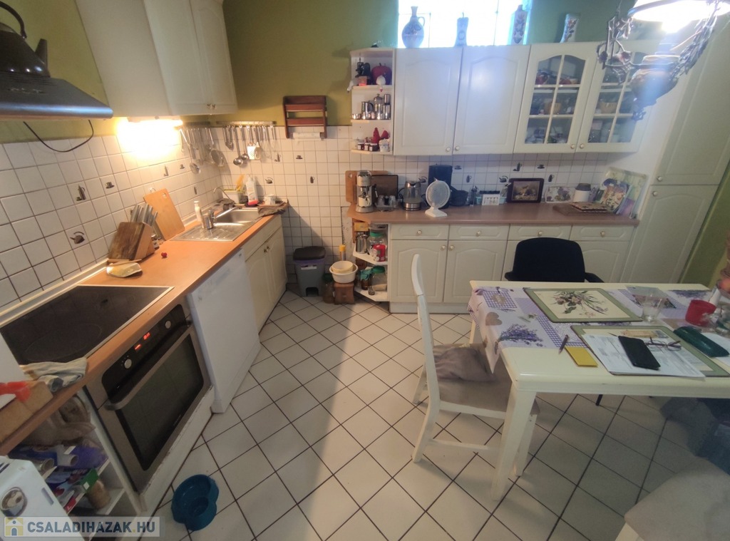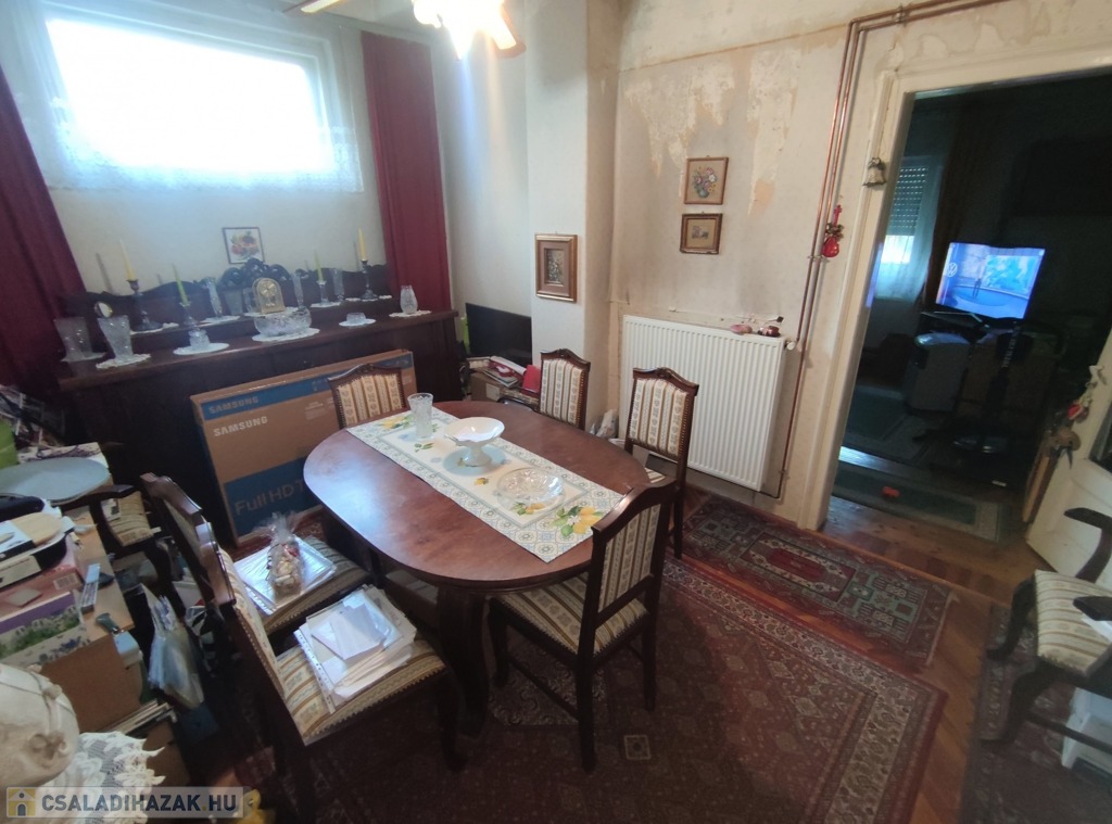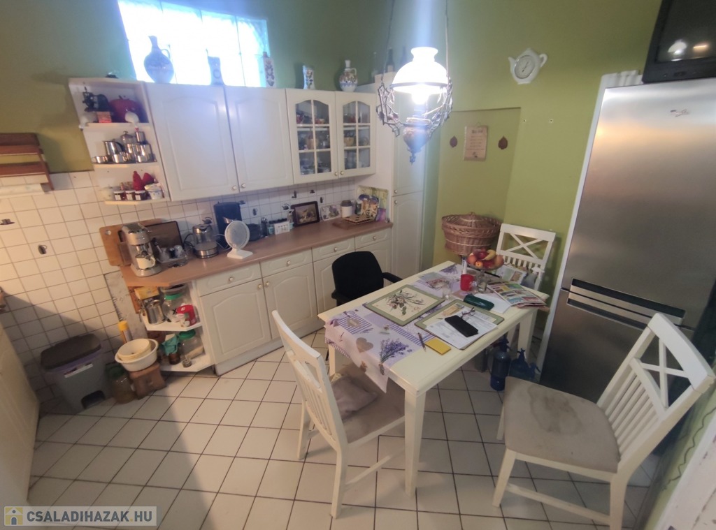 A lakás közepes állapotban van, de műszakilag fel lett újítva. A két lakás külön mérőórákkal rendelkezik. A elektromos hálózat (új biztosíték tábla) és a fűtés rendszer 10 éven belül lett korszerűsítve. Új típusú Western gázcirkó gondoskodik a fűtésről, amit egy vegyes tüzelésű kazán egészít ki. A konyhában a gépek (sütő, mosogató gép, bojler, hűtő) 1,5 éve lettek lecserélve. Műanyag bejárati ajtó újszerű, műanyag redőnyös ablakok lettek kialakítva mind a két lakrészben. Az eresz csatorna cseréje is megtörtént már. A fűtés átalánydíja az egész ingatlanban 70-80 ezer ft/hó. A belmagasság 3 méter.
