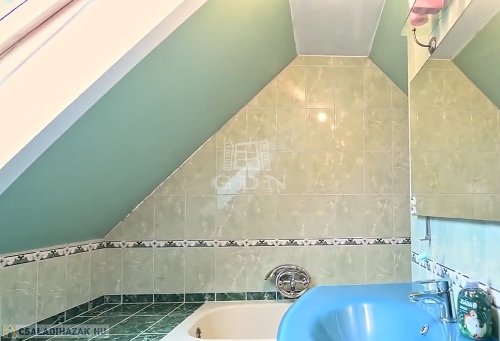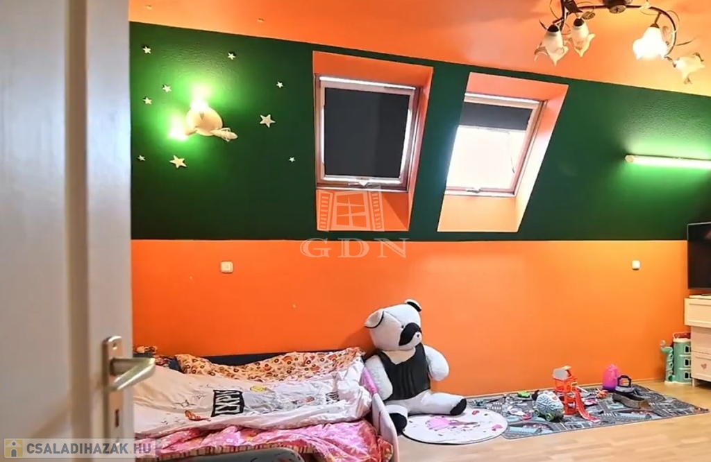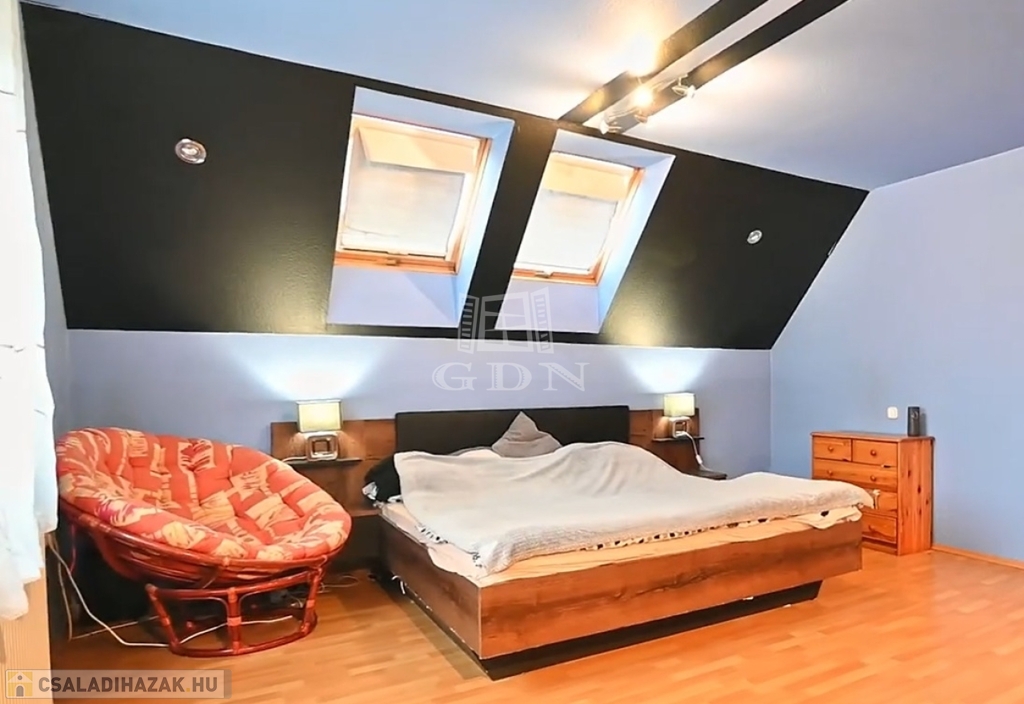Eladó a Pest megyei Gyömrőn egy 455m2 telken téglából épült tetőtér beépítéses 157 m2 5 szobás,3 fürdőszobás családiház.