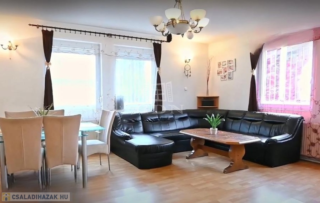 - Földszint: kellemes előtér, hangulatos, boltíves közlekedő, szoba, óriási nappali, tágas, felszerelt konyha, külön nyíló nagy kamrával, sarokkádas fürdő, külön toalett.