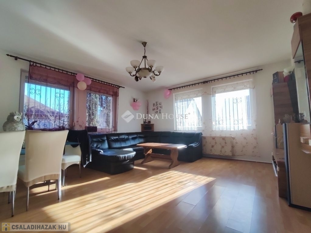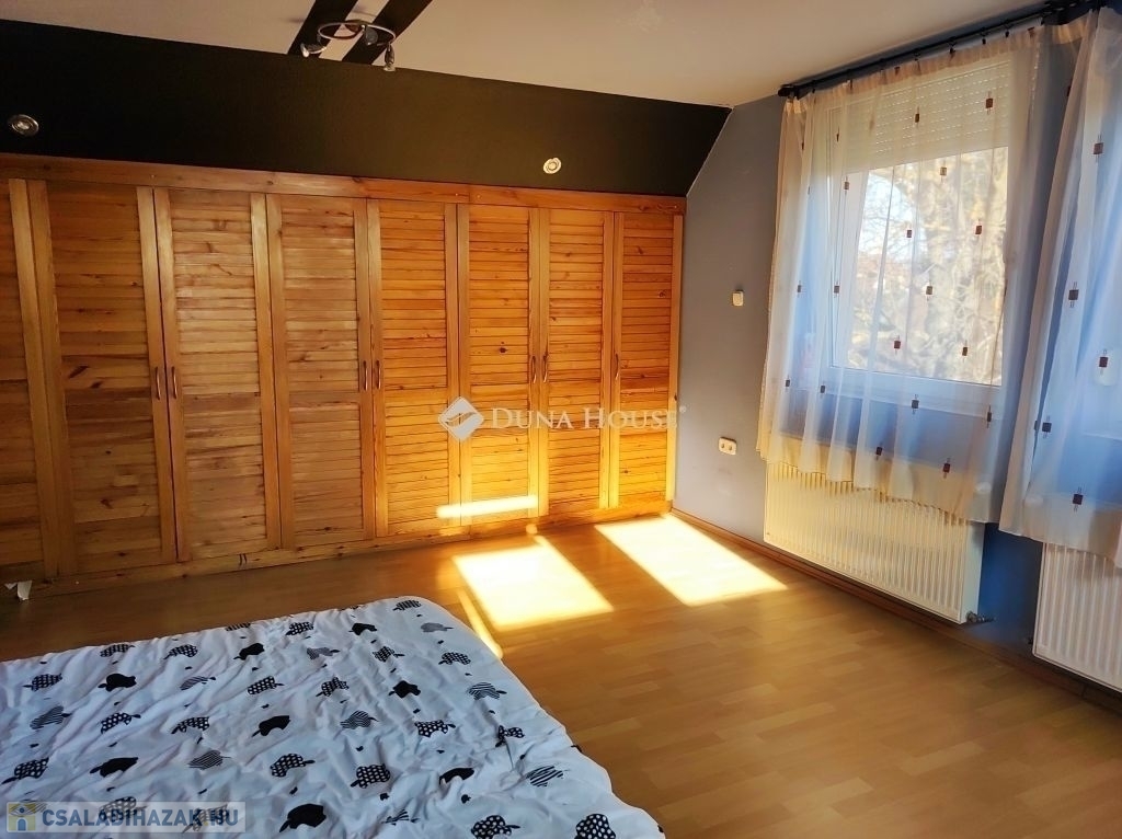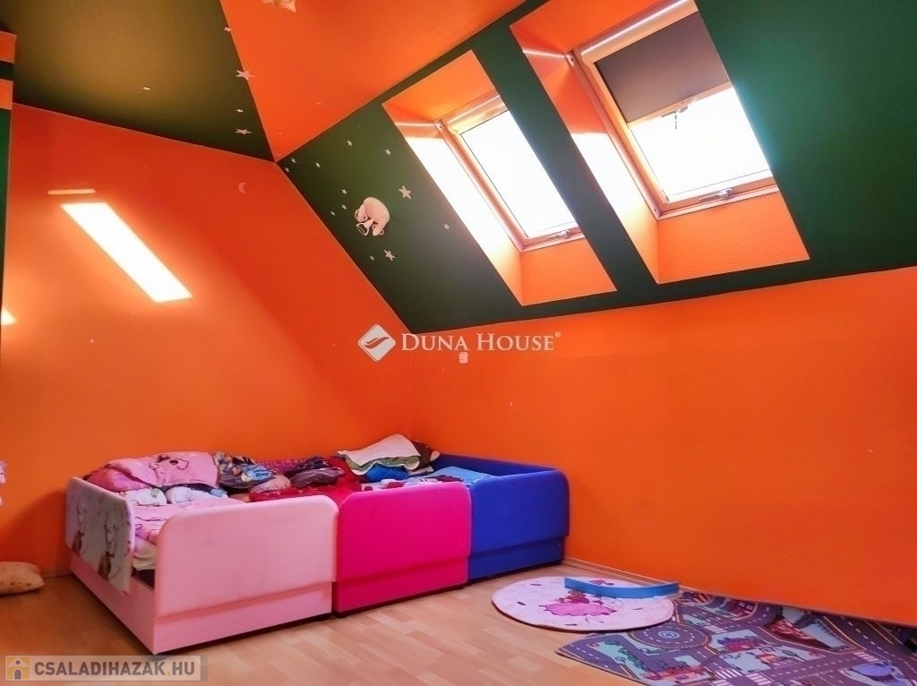 Eladó Gyömrőn egy bruttó 170 nm-es nappali + négy szobás, kiváló állapotban lévő, nagyon jó elrendezésű, kétszintes családi ház, 455nm-es rendezett telken.Telek:455 nm-es, külön helyrajzi számon lévő, rendezett, összközműves. Szépen rendezett kerttel rendelkezik, kerti kúttal, amely gazdaságos megoldást nyújt a kert öntözéséhez.A térkövezett udvarból, egy nagy teraszon át jutunk be az ingatlanba.Zárható garázs.Diófa árnyékában, kellemes grillező, bográcsozó hely lett kialakítva.Parkolás:Az épülethez tartozik egy garázs. Illetve a ház mellé további 2 autónak van még hely.Finanszírozás:Az ingatlan teljesen tehermentes, így akár banki támogatással is megvásárolható.Épület:Belépés után az előszobában találjuk magunkat, jobbra egy dolgozó szoba található, balra elhaladva a nagyjából 19 nm-es konyha-étkezőbe érkezünk. Az étkező mellett található a nappali. A konyha mellet található a kamra, illetve az emeletre a feljáró. A feljáró mellett található még a fürdőszoba és egy külön WC.A felső szintre jutva két hálószoba, egy fürdőszoba WC-vel, és további egy szoba található.Műszaki:Az ingatlan 2006-ben épült.15 cm szigeteléssel található a házon.Redőnyös műanyag ablakokat kapott a ház.2025 januárjában ki lett cserélve a kazán. (3év garancia van rajta.)A fűtést radiátorok adja. A villanyvezeték rézvezetékek.Környék:A Gyömrői-tó mindössze 10 perc sétára található, amely kellemes környezetet biztosít a sétákhoz és a szabadidős tevékenységekhez.A környéken megtalálhatók a mindennapi élethez szükséges boltok, gyógyszertárak, óvodák és iskolák.A vasútállomás és a helyi, valamint távolsági buszközlekedés rövid sétatávolságra található, így Budapest és a környező települések is gyorsan megközelíthetőek. Gépjárművel az M4,és az M0 autóút gyorsan elérhető.Érdeklődni a hét bármely napján lehet, ha kérdése van, vagy szeretne időpontot egyeztetni, Forduljon hozzám Bizalommal!