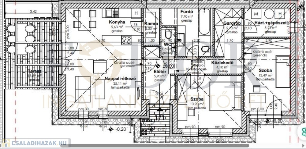 • Vasbeton sávalap, fafödém 30 cm-es kőzetgyapot szigeteléssel.