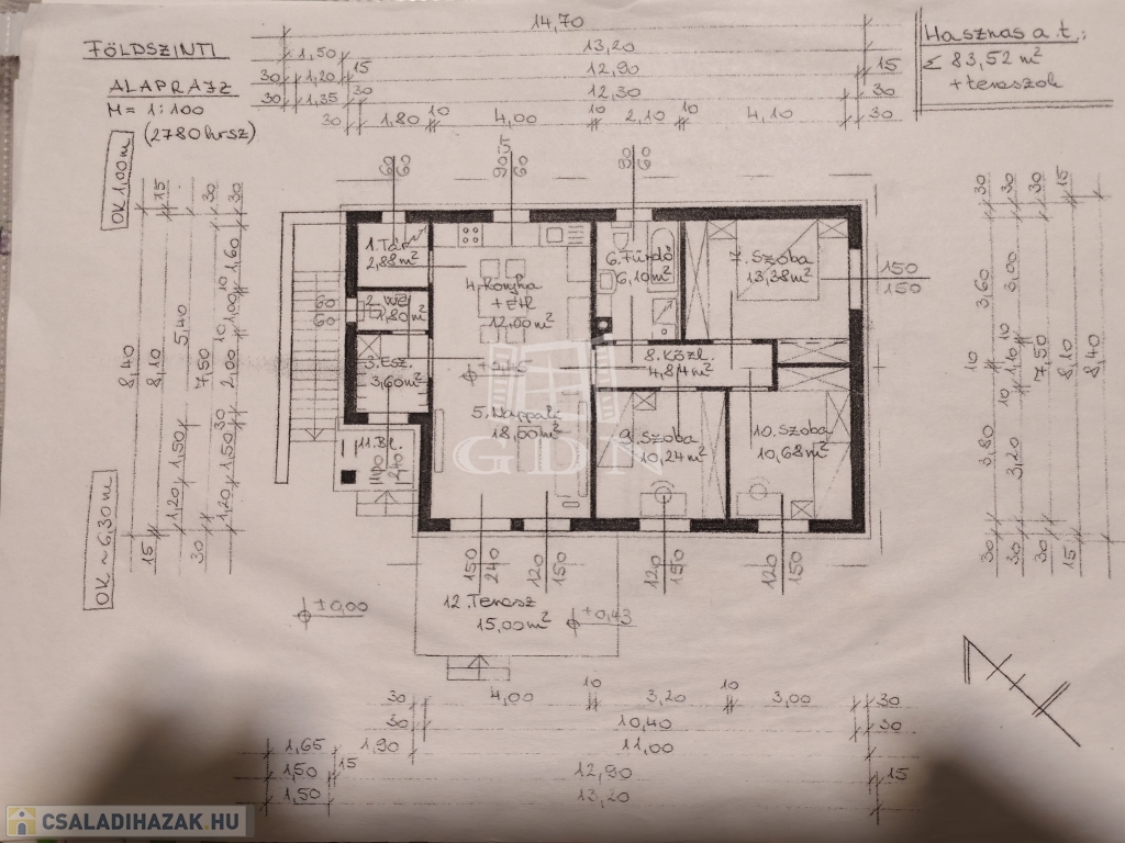 Szoba:13,38m2, 10,68m2, 10,24m2