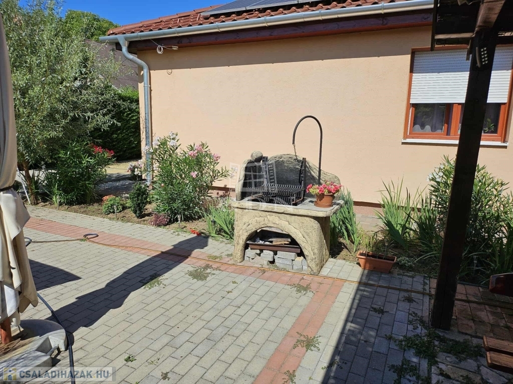 Kert: Térköves udvar ,elektromos kapu, 250m2 zöld terület melyen lehetőség van kikapcsolódásra, szanetli, grillező, bográcsozó áll rendelkezésre.