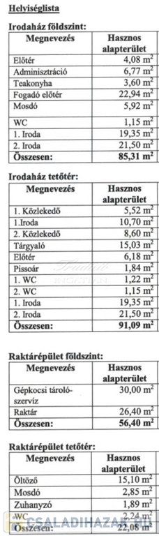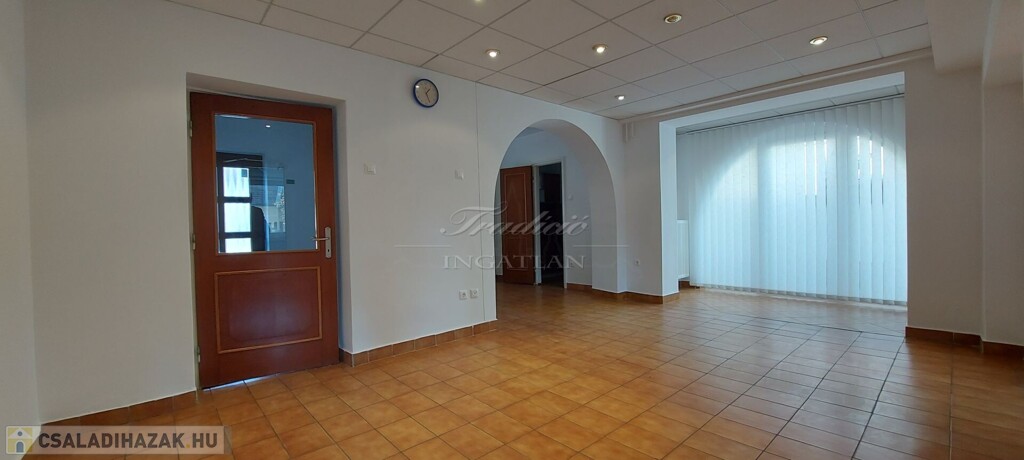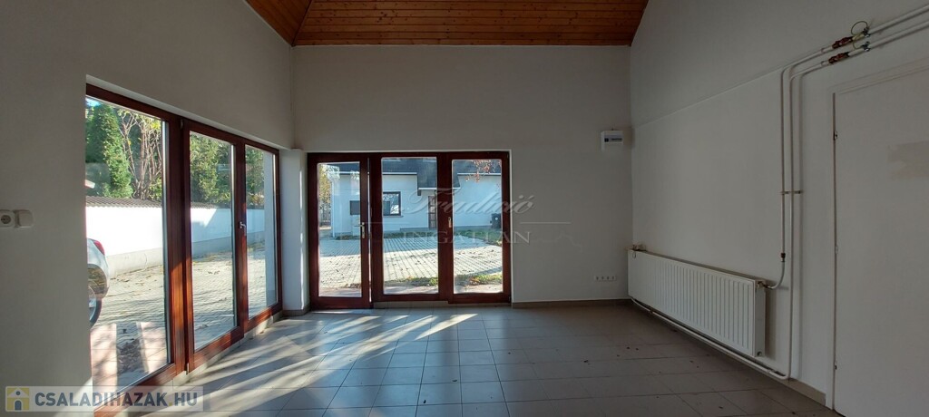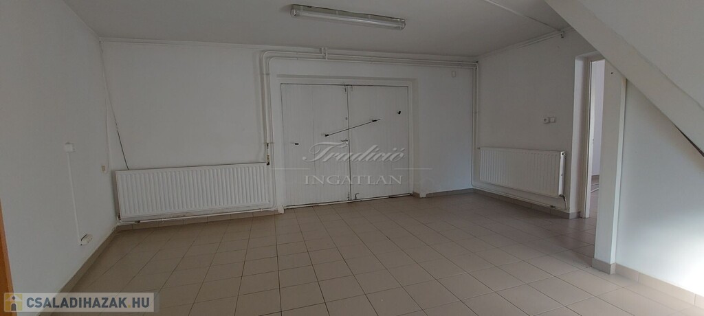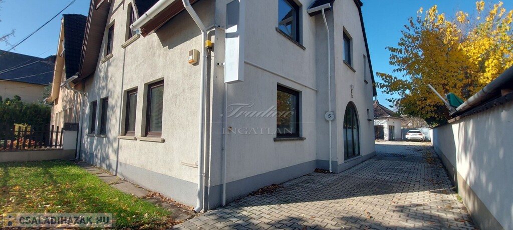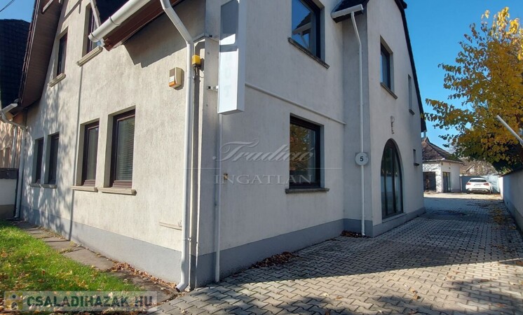 Az ingatlan jelenleg irodaházként működik, de nagyobb család részére is kitűnő életteret nyújt. A telek nagy része térkővel burkolt, ahol 6 autó parkolására van lehetőség. A garázs egy raktárhoz/üzlethelyiséghez kapcsolódik, melynek tetőtere is beépített.