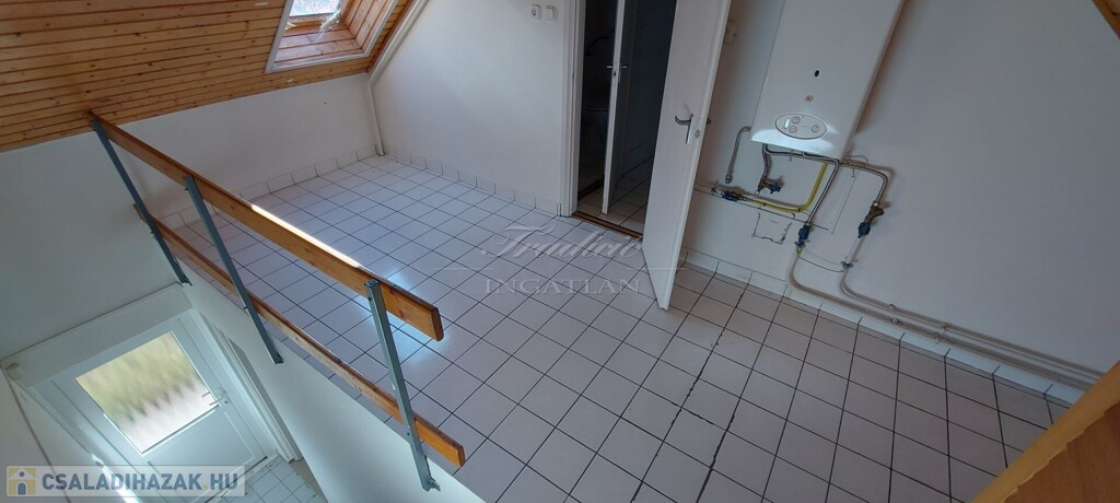 Az ingatlan földszint és beépített tetőtér kialakítású ház, tégla falazattal beton födémmel,magastetővel, cseréphéjazattal, kőporos vakolattal. Az ingatlan néhány éve felújításon esett át, melynek keretében nyílászáró csere történt. Azépület bejárata az udvar hátsó része felől nyílik. A belső tér falai festettek, a szükséges helyeken csempével fedettek. A padlóburkolatok járólap és laminált parketta. A háromrétegű hőszigetelő üvegezéssel szerelt ablakok, a műanyag anyagú bejárati és a fa belső ajtók is jó állapotúak. A lakótér fűtése és melegvíz ellátása kombi gázkazánnal megoldott, a hőleadás padlón keresztül és radiátorokkal történik.