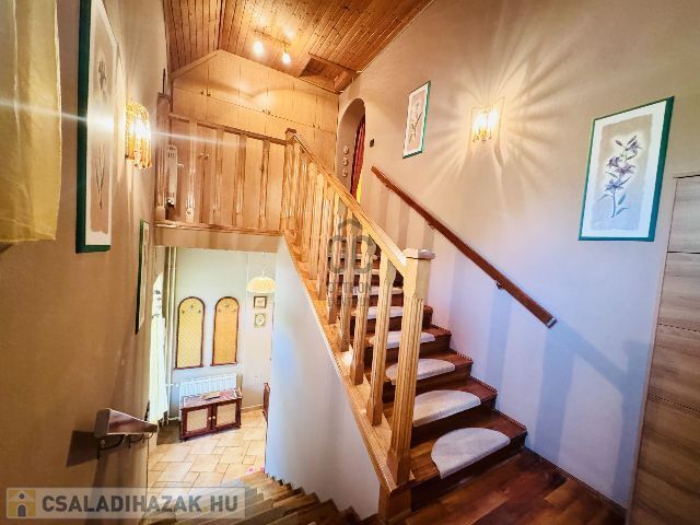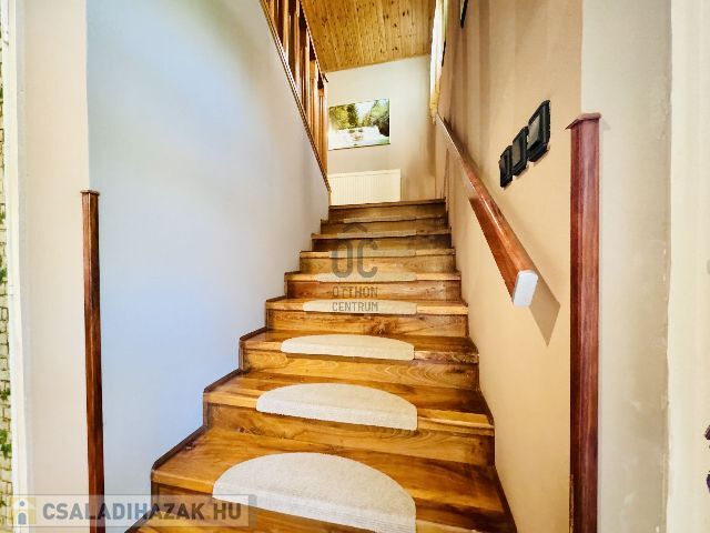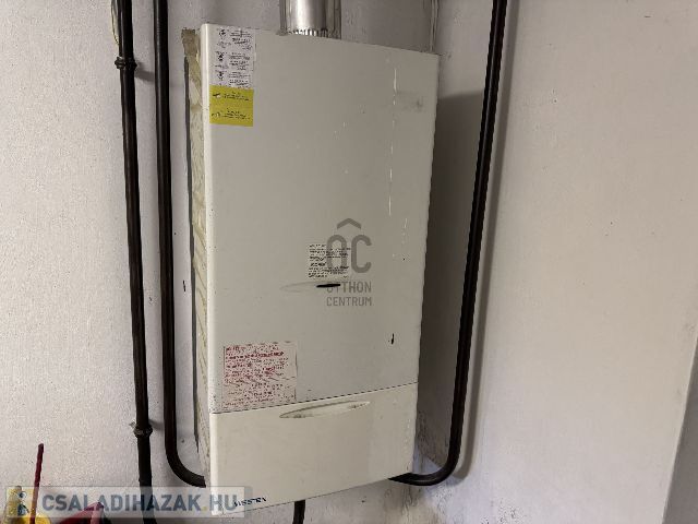 A fűtés gáz cirkó kazánnal, 4 db klímával és a nappaliban található kandallóval megoldott. Nappali és étkező-konyha részen a hőleadó PADLÓFŰTÉS, a többi helyiségben pedig radiátorok. Meleg vizet 80l-es villanybojler szolgáltatja. A tető fafödémes cseréptetővel. Műanyag ablakok 10 évesek. Építés éve: 1992.