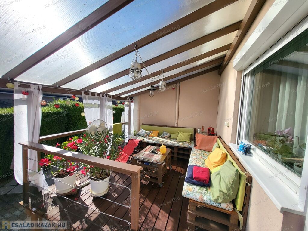 - Ácsolt, fedett terasz és kis, zöld kert – pont elég egy nyári grillezéshez, kerti medencéhez vagy gyerekjátszóra