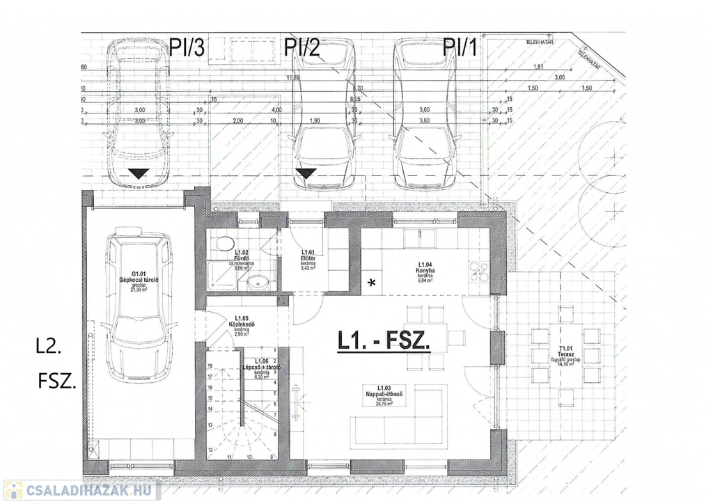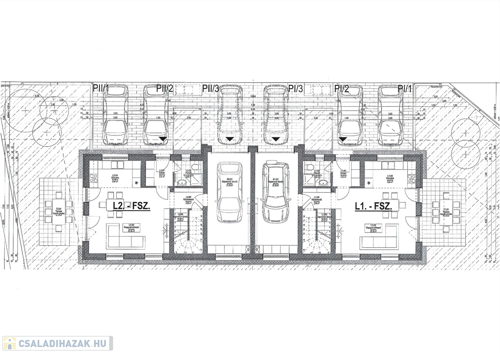 Telek méret 305 m2, melyből 155 m2 parkosítható zöldterület.