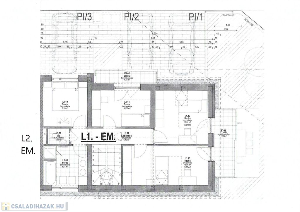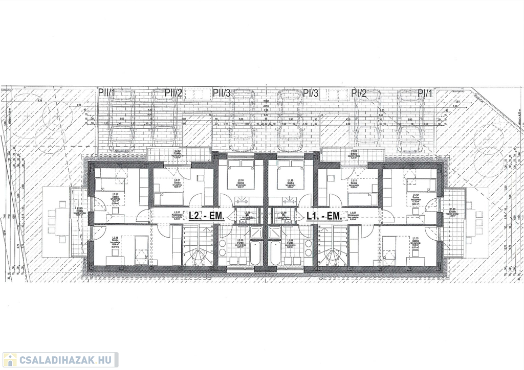 4 db hálószoba, fürdőszoba (dupla mosdó-zuhanyzó-fürdőkád), külön wc helyiség, közlekedő és 2 db erkély került kialakításra (mely 3 szobához kapcsolódik).