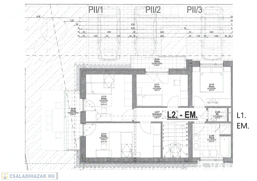 4 db hálószoba, fürdőszoba (dupla mosdó-zuhanyzó-fürdőkád), külön wc helyiség, közlekedő és 2 db erkély került kialakításra (mely 3 szobához kapcsolódik).