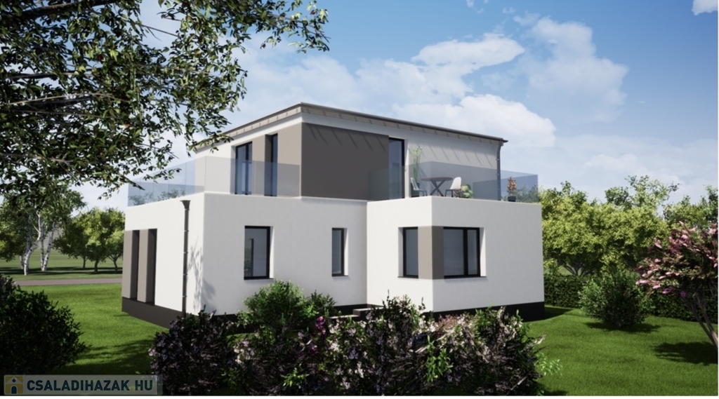 Győr-Ménfőcsanakon győri panorámával rendelkező 776 m2-es telken, kialakult lakókörnyezetben, nettó 136 bruttó 228 m2-es, 3 szoba + nappalis, 2 fürdőszobás, kiváló alaprajzi elrendezésű, modern stílusú családi ház nagy méretű tetőteraszokkal, pincével fűtéskész állapotban eladó.