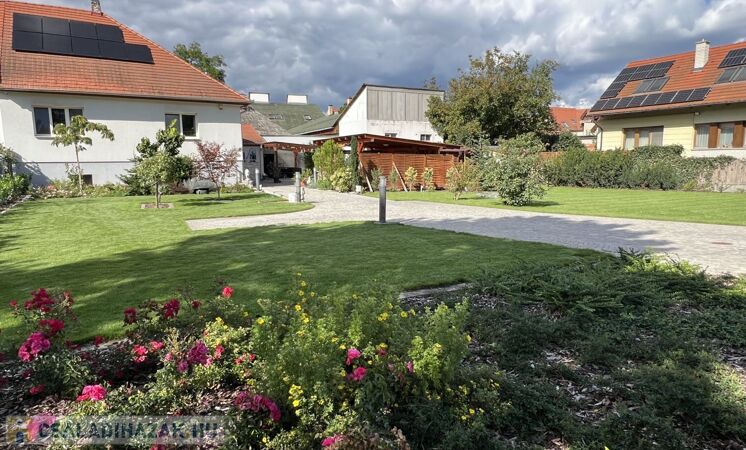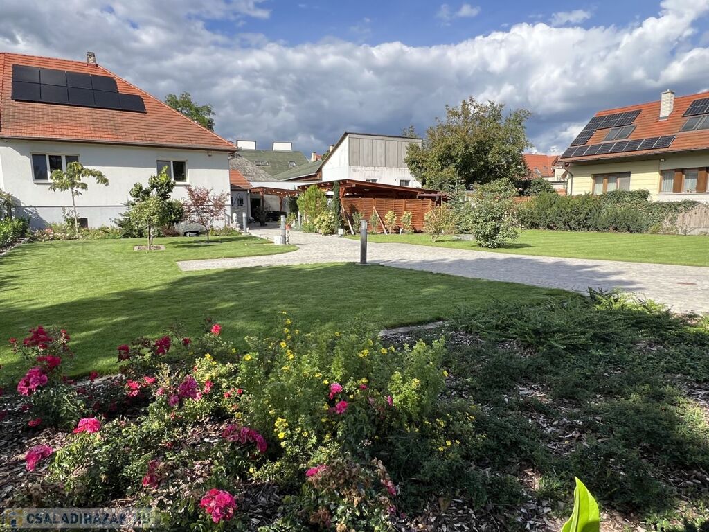 A 852 m2-es telek parkosított, automata öntözőrendszerrel, robot fűnyíróval ellátott, prémium anyagok felhasználásával, magas műszaki minőségben megépített térköves közlekedő részekkel rendelkezik gyalogos és autóforgalom részére egyaránt.