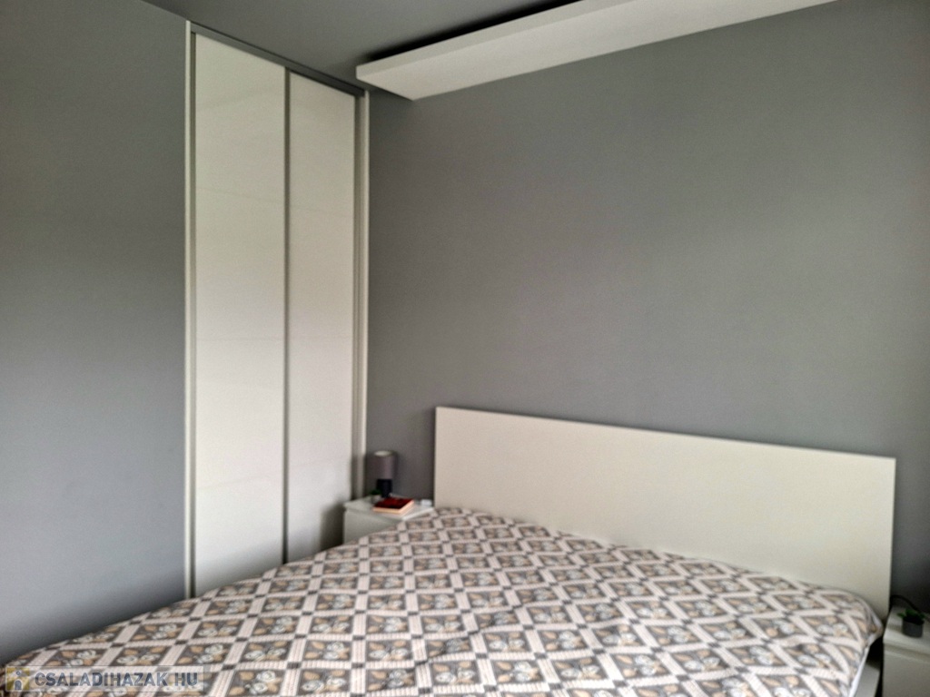 A szülői hálóban található gardróbszekrény egy kis helyiséget rejt, ahol igény szerint WC kézmosó könnyedén kialakítható.