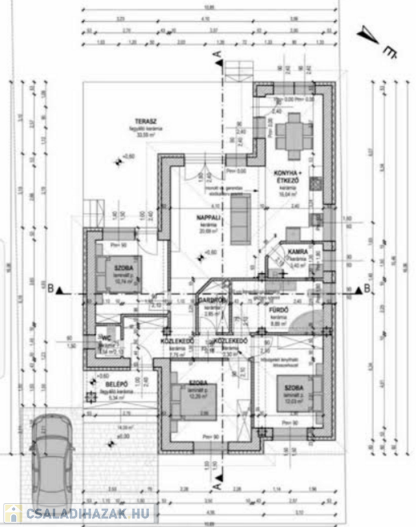 ELOSZTÁSA: közlekedő, nappali-étkező-konyha, kamra, 3 szoba, gardróbszoba, fürdőszoba, terasz.