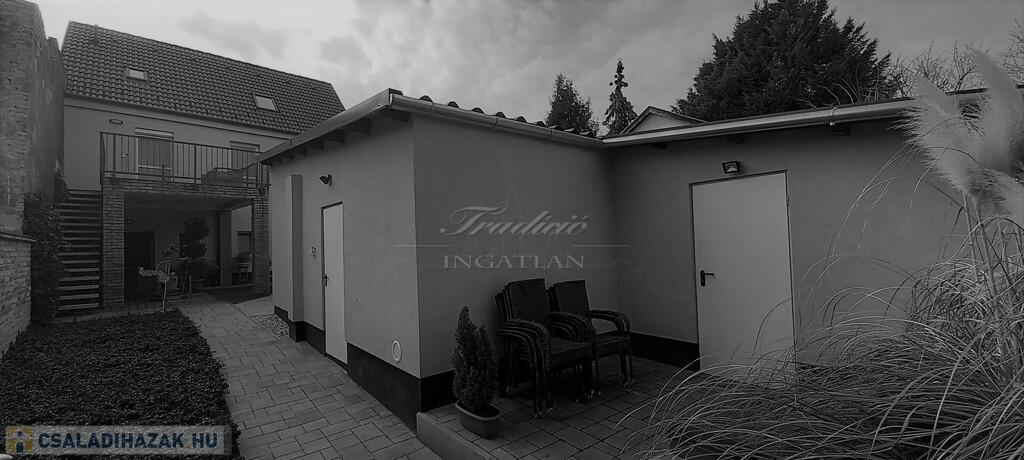Győr-Újváros rendezett, kedvelt részén kínálom eladásra ezt a 695 m2-es telken lévő 6 szobás, kiváló elosztású, dupla garázzsal rendelkező családi házat.