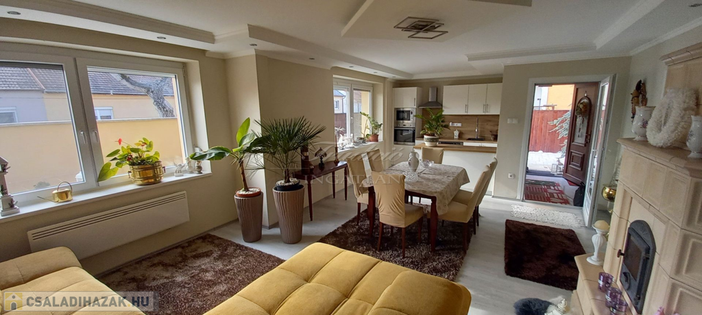 Győr-Újváros rendezett, kedvelt részén kínálom eladásra ezt a 695 m2-es telken lévő 6 szobás, kiváló elosztású, dupla garázzsal rendelkező családi házat.