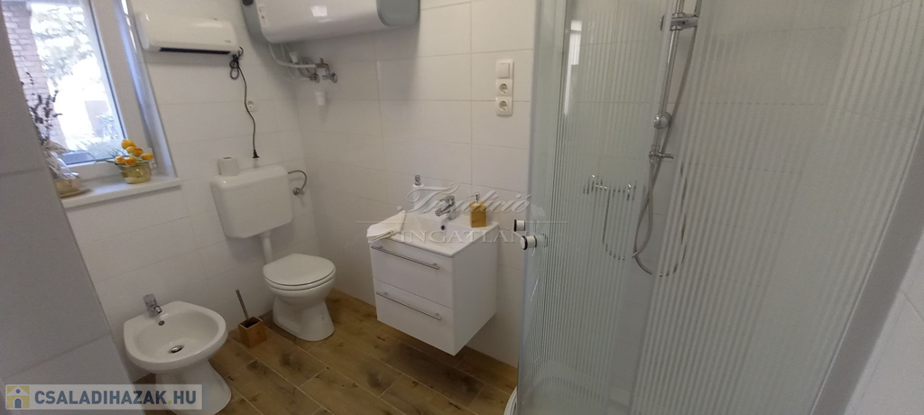A 2015- ben felújított ingatlan elrendezése révén akár befektetésre, vállalkozásra, vagy több generáció kényelmes együttélésére is kiválóan alkalmas lehet.