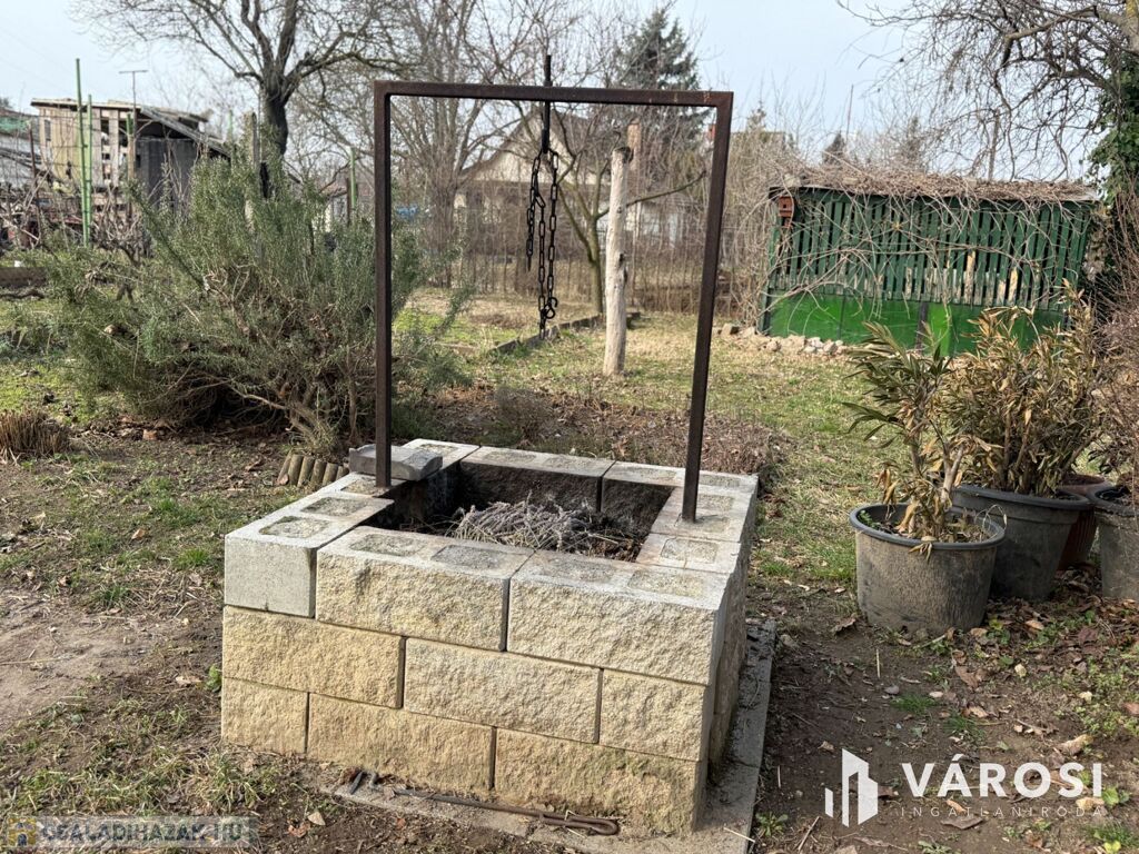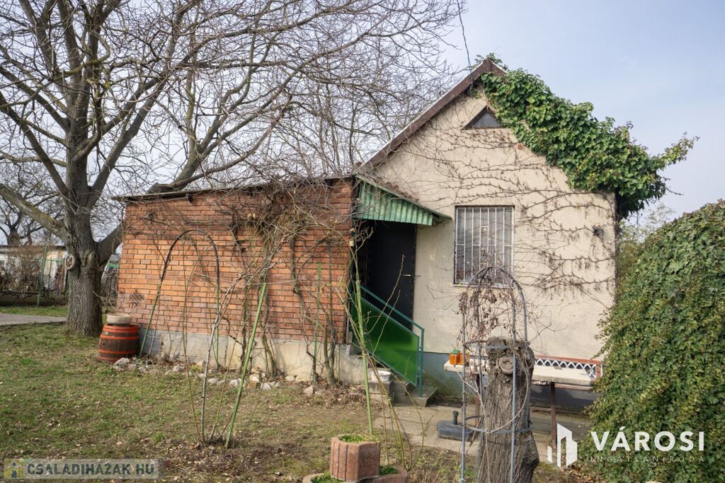 A telken egy ~ 25 m²-es alapterületű kisház áll pincerésszel, padlással, valamint különálló melléképületekkel.