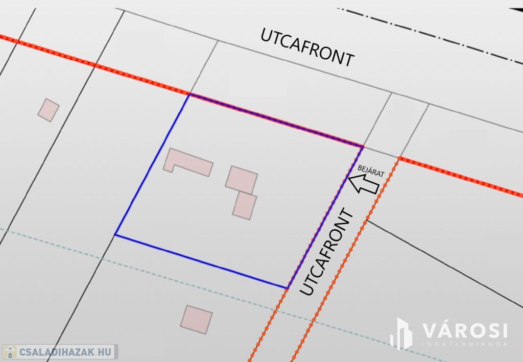 Aszfaltos főútról nyíló saroktelek, könnyen megközelíthető.