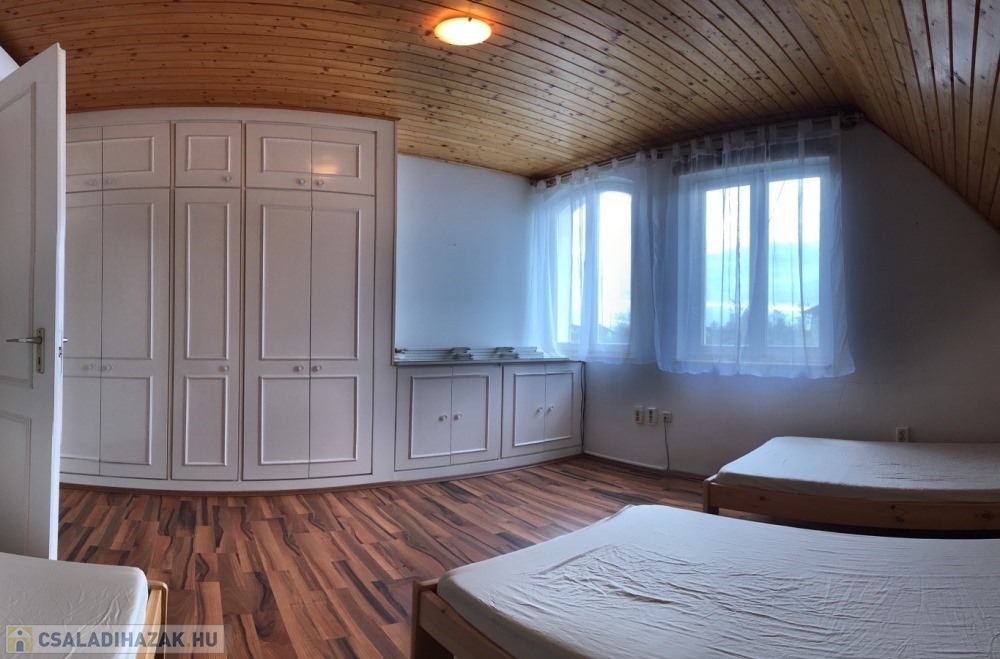 Győr-Likócs természet közeli, családi házas nyugodt övezetében, AUDI gyártól, Ipari Parktól, Belvárostól, M1-es autópályától pár perces autótávolságra, 2.100 m2-es összközműves telken lévő 2 szintes, jó állapotú épületben, összesen 9 db külön bejárattal rendelkező (10 m2; 14 m2; 17 m2, 19 m2, 20 m2 nagyságú) hálószobákból, 3 db fürdőszoba + WC-ből, méretes nappaliból/társalgóból/közösségi térből (54 m2), különálló konyhából, méretes étkezőből (17 m2), különálló kamrából, 35 m2-es TERASZBÓL, különálló pincetárolóból álló, valamint több KLÍMÁVAL felszerelt, 336 m2 hasznos alapterületű panzió/családi ház eladó.