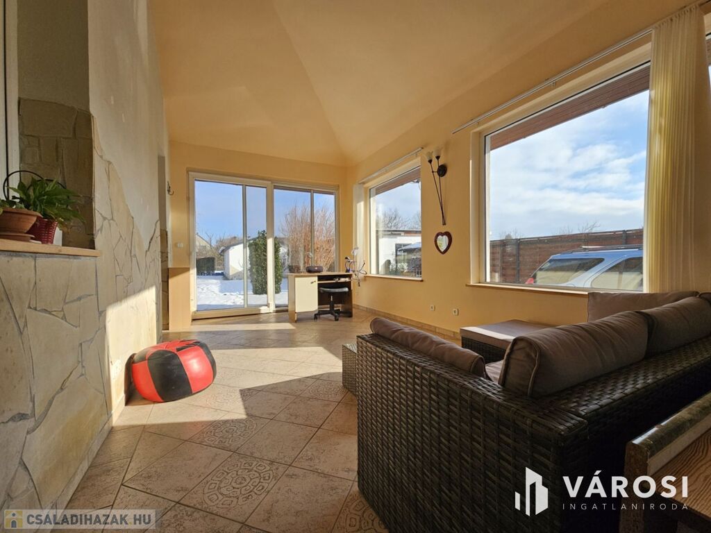 • valamint a nappaliból közvetlenül elérhető egy körben zárt, nagy üvegfelületekkel rendelkező, rendkívül világos télikert (~20 m²)