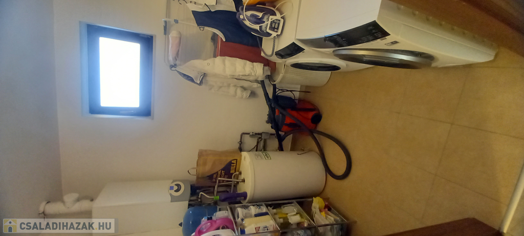 A melegvizet is biztosító Ariston típusú gázkazán mellett a fűtésről a kazánházban egy puffertartállyal is rendelkező vegyestüzelésű kazán, valamint 2 db hűtő-fűtő klíma gondoskodik.