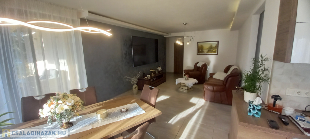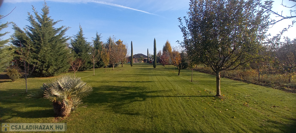 Győr kedvelt kertvárosi részén, Ménfőcsanak csendes, forgalom mentes mellékutcájában kínálom eladásra ezt a gyönyörűen parkosított 1830 m2-es telken lévő, nappali + 3 hálószobás, újszerű állapotú, 2014-ben téglából épült családi házat.