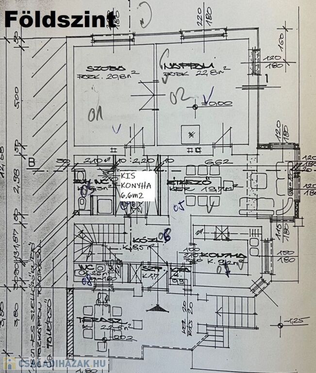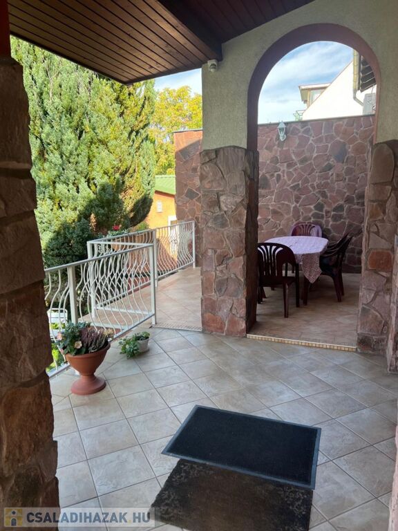 Az épület földszinti (magasföldszinti), kert felé néző, hangulatos teraszára, 9 lépcsőn keresztül érkezünk.