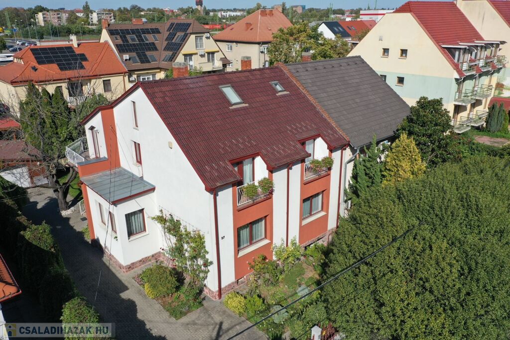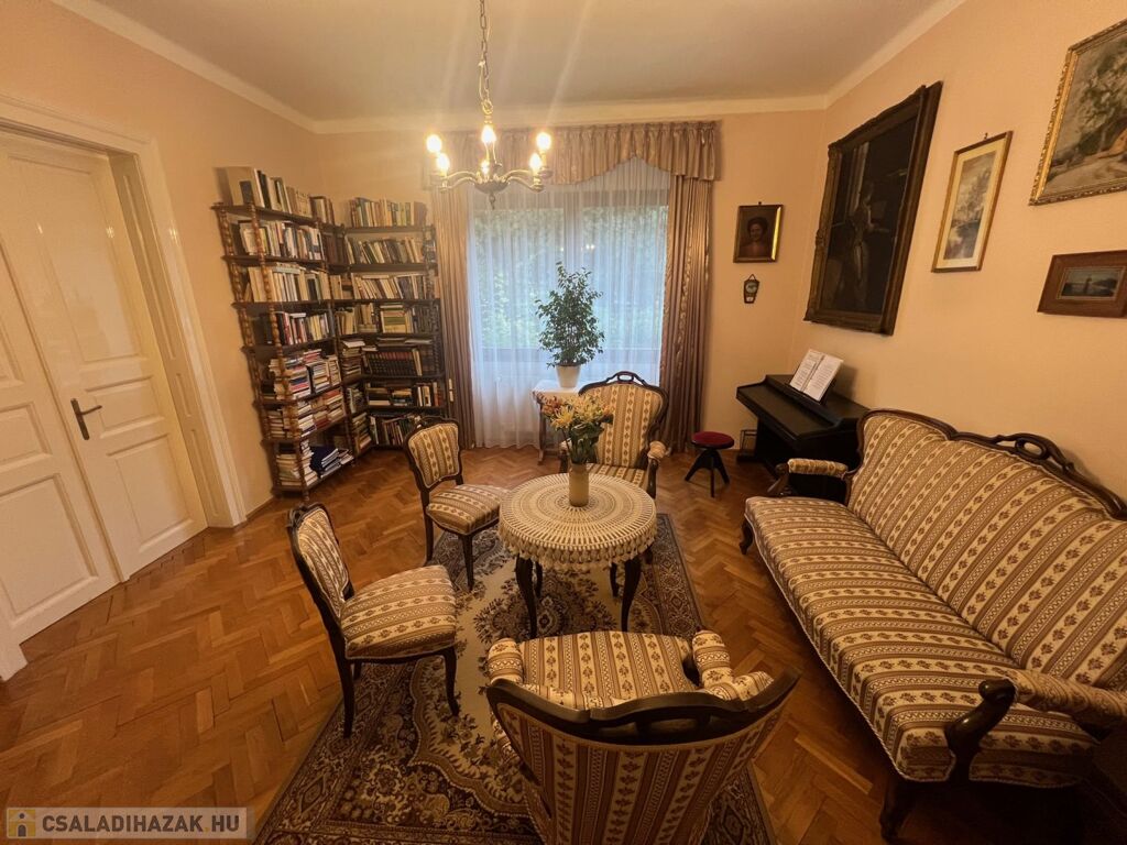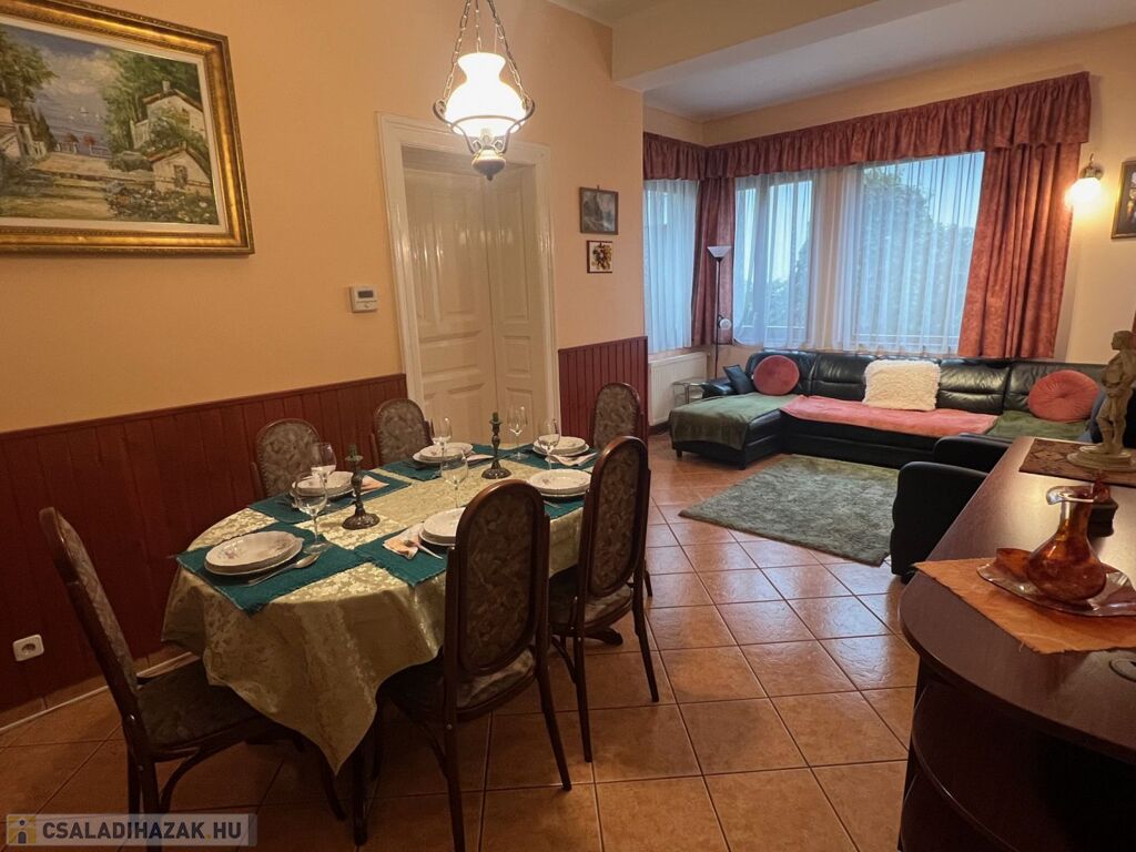 Győr-Nádorváros, klasszikus, belvároshoz közeli részén, 540 m2-es telken elhelyezkedő, nagypolgári hangulatú, 204 m2-es, tágas, napfényes lakóterületű (pincével, garázzsal együtt 410 m2), nappali + 7 szobás, pincével, garázzsal rendelkező lakóház eladó.