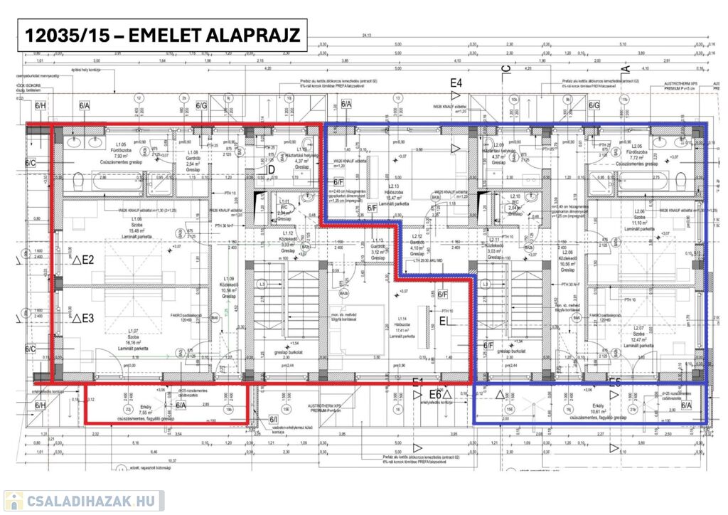 A képek között feltöltött alaprajzon a kék színnel jelölt lakás: