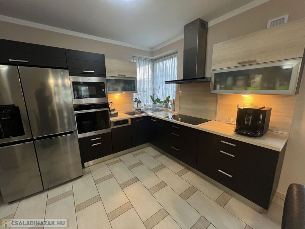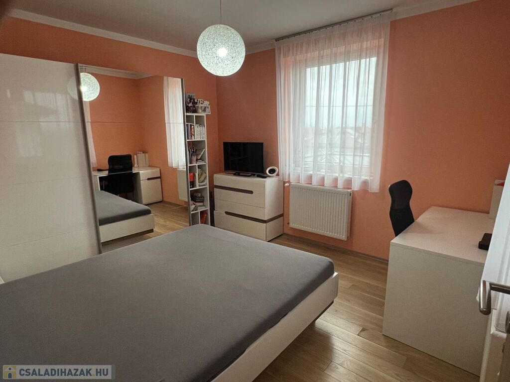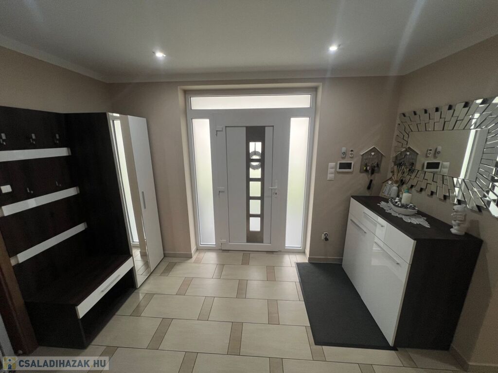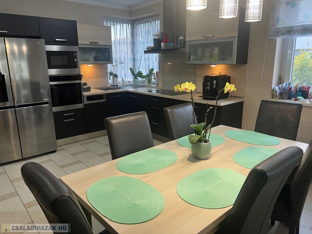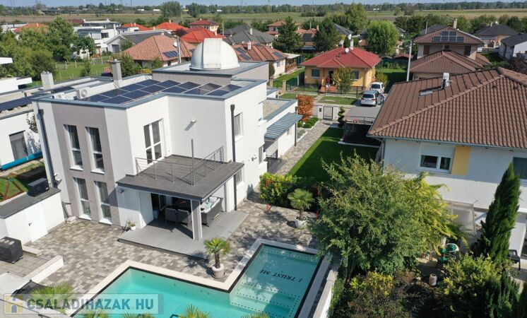 Győr-Ménfőcsanak nyugodt részén, új építésű lakóházak között, 540 m2-es telken, 2014-ban épült, 171 m2-es, nappali plusz 4 szobás lakótérrel, 61 m2-es terasszal, erkéllyel, 30 m2-es garázzsal, 20 m2-es fedett gépkocsi beállóval, 65 m2-es medence térrel, csillagvizsgálóval rendelkező lakóház eladó.