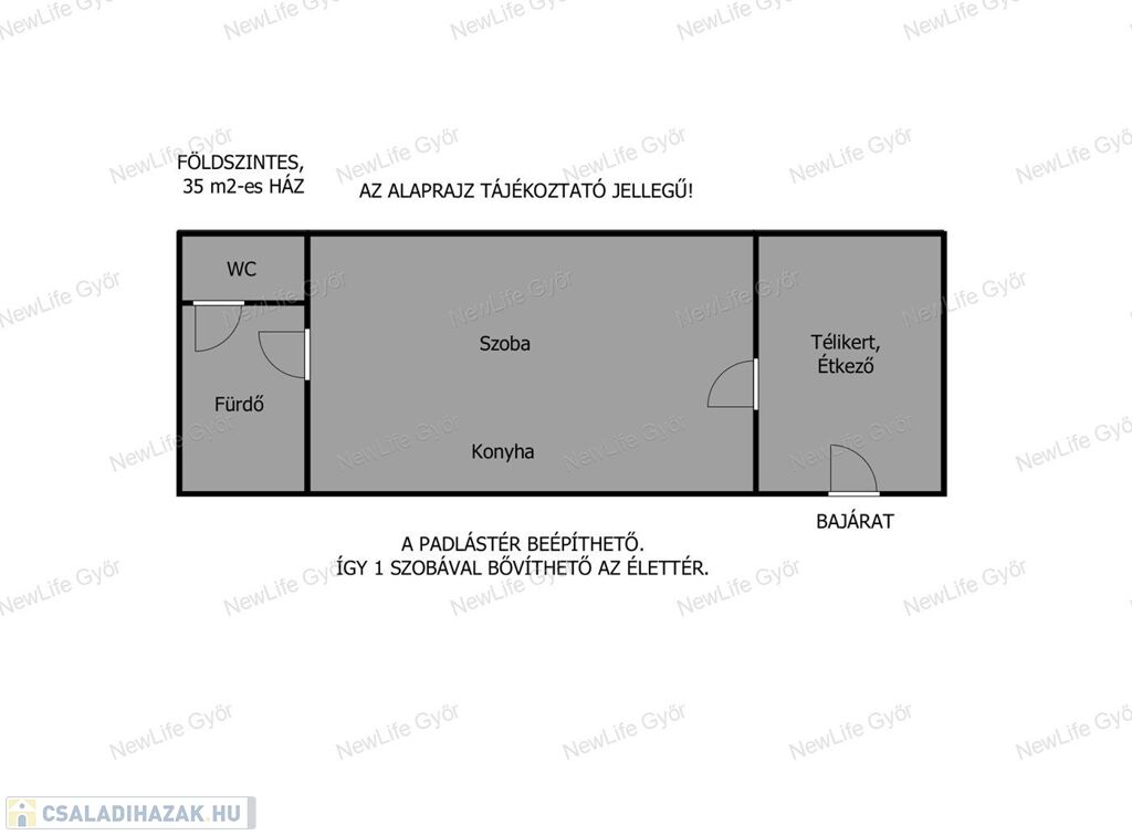 - Padlástér beépíthető, így egy halószobával bővíteni lehet az életteret.