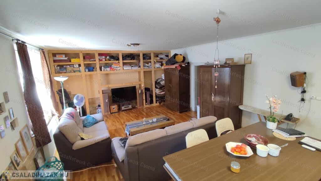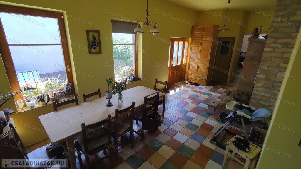 Eladó Győrszentiván kedvelt részén egy br. 180nm-es, 2004-es építésű remek adottságokkal rendelkező családi ház!Főbb jellemzők:- amerikai konyha, nappali + 4 szoba - 860 nm2 –es telek - hőszigetelt fa ablakok - prémium minőségű kondenzációs gázkazán- épített tömegkályha, címeres téglákkal, sütésre és fűtésre is alkalmas - 2 fürdőszoba, mindkettő wc-vel (az egyik újonnan kialakított, fürdőkáddal, a másik extra méretű, lépcsős zuhanyzóval) - szobák parkettával burkoltak, radiátor hőleadókkal - tágas ebédlő és a konyha magas kopásállóságú, egyedi mintázatú járólappal, padlófűtéssel - nappali és ebédlő funkciója szabadon változtatható - 46 nm2 terasz, melynek burkolata az új tulajdonos ízlése szerint alakítható - fúrt kút a kert locsolásához - az udvaron élelmiszer előállítására érvényes engedéllyel és szigetelt falazattal rendelkező cukrászműhely található, melynek fűtéséről, illetve hűtéséről egy 3,5 KW-os Gree klíma gondoskodik - az udvaron szakember által készített terv szerint ültetett, szebbnél szebb növények gondoskodnak a hűs klímáról