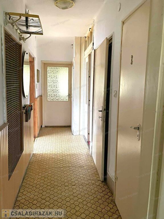 Az 1970-és évek végén épült ház első szintjén konyha, nappali, szoba, fürdőszoba, külön WC, kamra, közlekedő, előtér található. A nappaliból vezető lépcsőn keresztül érhető el az emelet, ahol 3 szoba (1 nagy szoba, 2 kis szoba), fürdőszoba, közlekedő került kialakításra. A közlekedőből nyílik egy hatalmas tetőterasz, melyről rálátni a fák lombkoronájára, a környező házakra. Pihenésre, kikapcsolódásra is alkalmas. A családi ház alatt egy félszuterén pince található, mely egy műhelyből, egy raktárból és egy WC-ből áll. A pince elég tágas, vállalkozás indításához vagy hobbiszobának is használható.