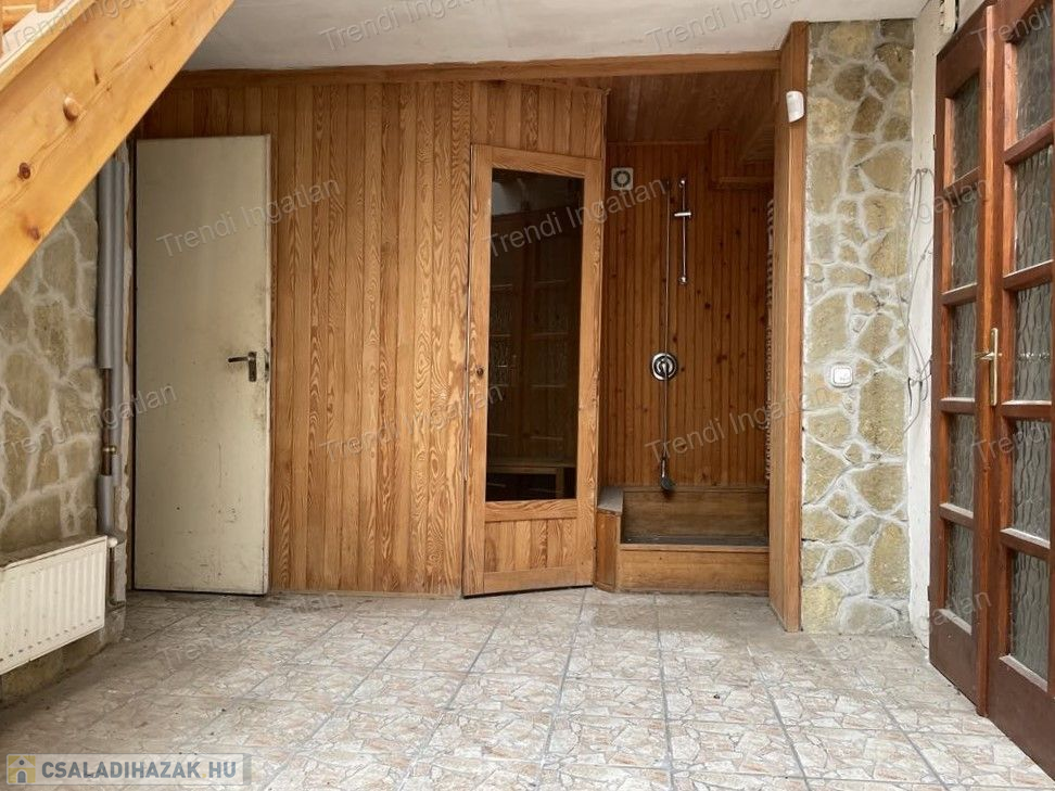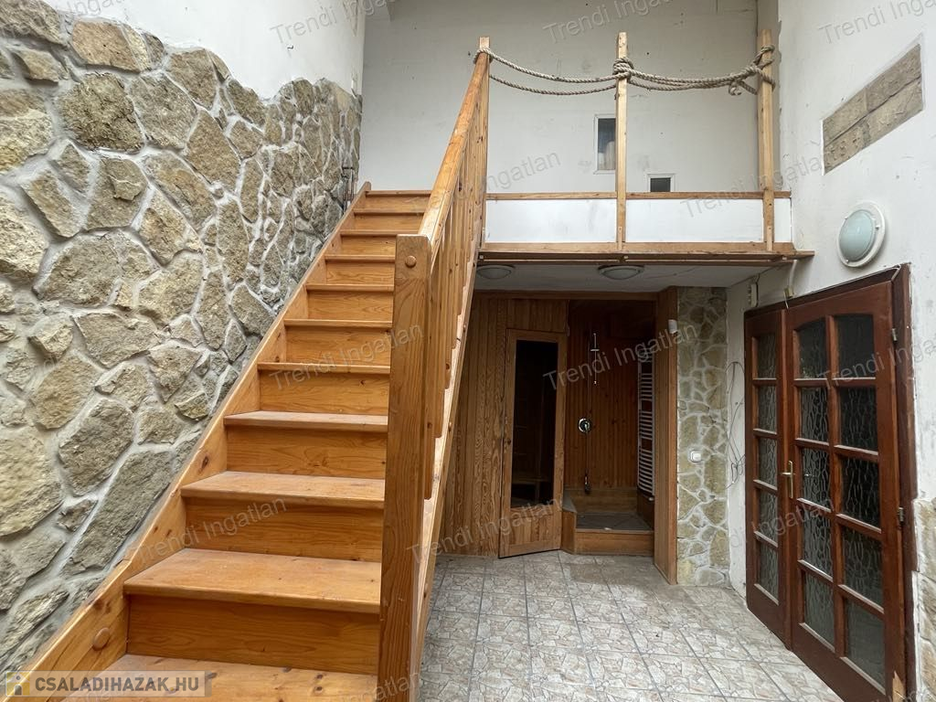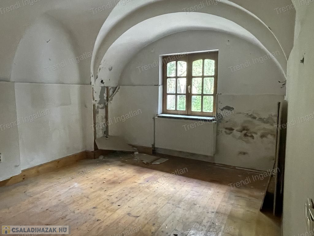 Több mint 100 évvel ezelőtt épült házban cserépkályhával díszített nappali, konyha, étkező, 2 szoba, fürdőszoba, külön WC, beépített tornác, közlekedő, kazánhelyiség, külön zuhanyzóval ellátott szauna és egy 18,90 nm-es garázs található. Az udvarról és az utcáról is megközelíthető külön bejárttal rendelkező, régen orvosi rendelőként funkcionált tágas dolgozószoba található, ahol WC és közlekedő is kialakításra került. A beépített tornácos közlekedőn keresztül érhető el a közel 20 nm-es pince. Az emeleten kisebb szoba és fürdőszoba kapott helyet, de a tetőtér igény esetén beépíthető.