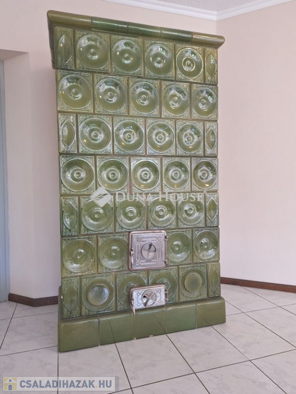 helyiségben padlófűtéssel kombinálva, 2 db cserépkályha, 5 db hűtő-fűtő