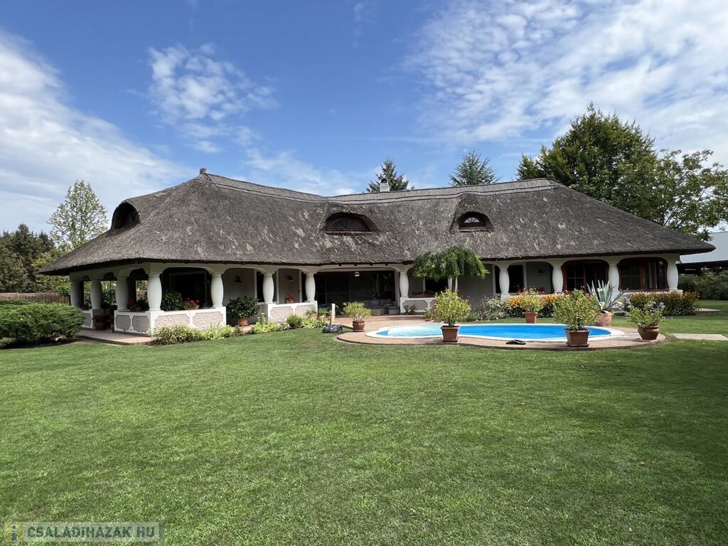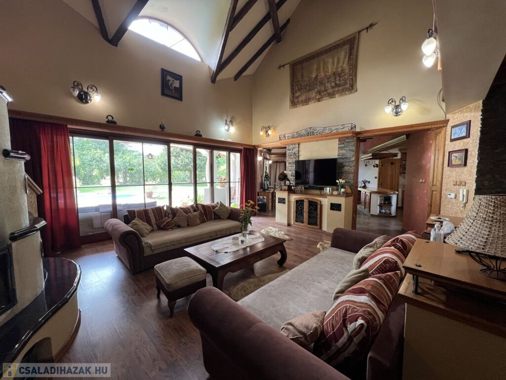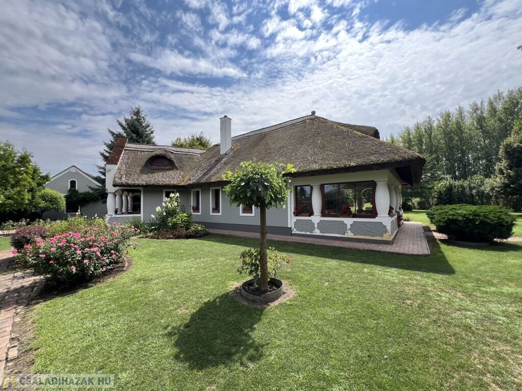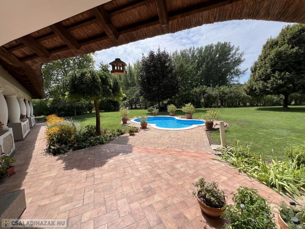 Győrladaméron zöldövezeti, természeti környezetben a Mosoni - Duna partján, 6039 m2-es, parkosított, automata öntözőrendszerrel ellátott, csendes telken, 2002 - ben épült, a meghitt, barátságos otthon melegét minden részletében magából árasztó, bruttó 333 nettó 200 m2-es, egyedi stílusban megtervezett és minőségi anyagokból kivitelezett, 3 szoba + nappalis, galériás, egyedülálló, medencés családi ház dupla garázzsal eladó.
