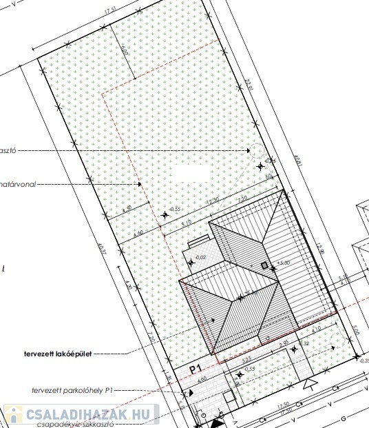 A telek szélessége 17,5 m.