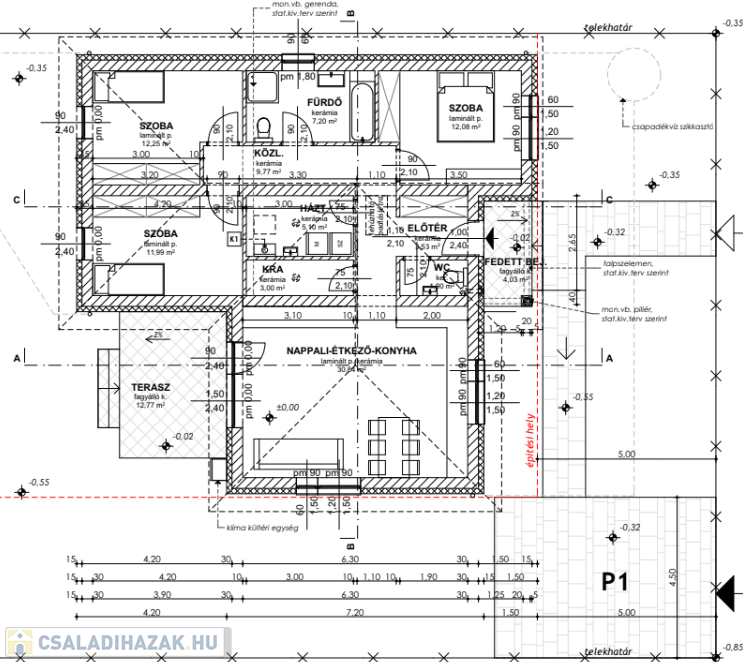 30-as téglafalazattal 15 cm szigeteléssel készül, a födémre 30 cm szigetelés kerül.