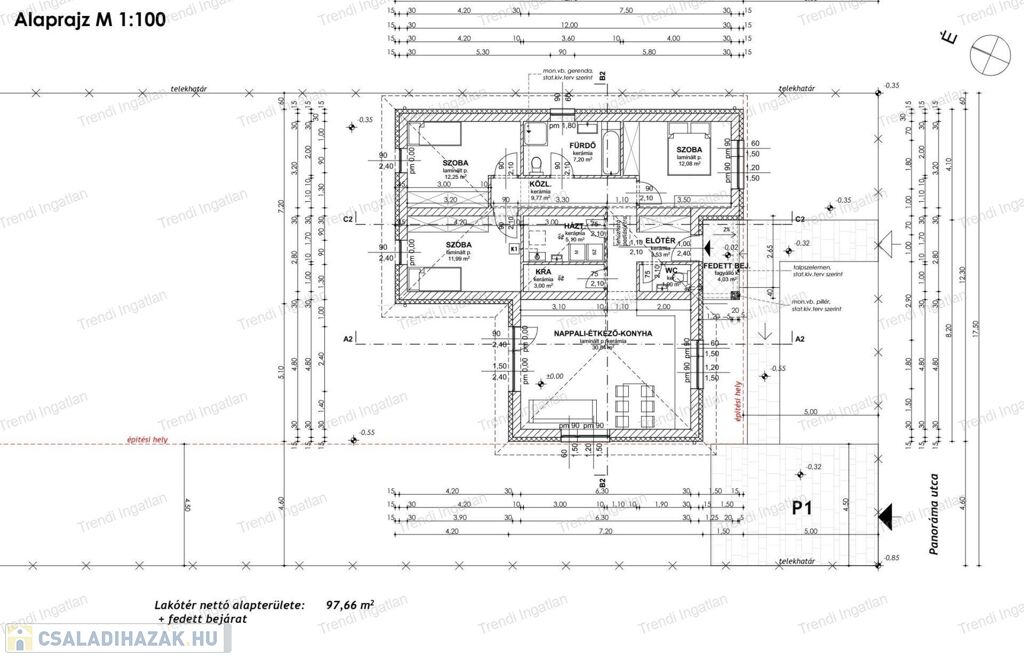 Győrság új építésű részén önálló 97,66 nm-es nappali + 3 szobás családi ház 715 nm-es telken eladó.