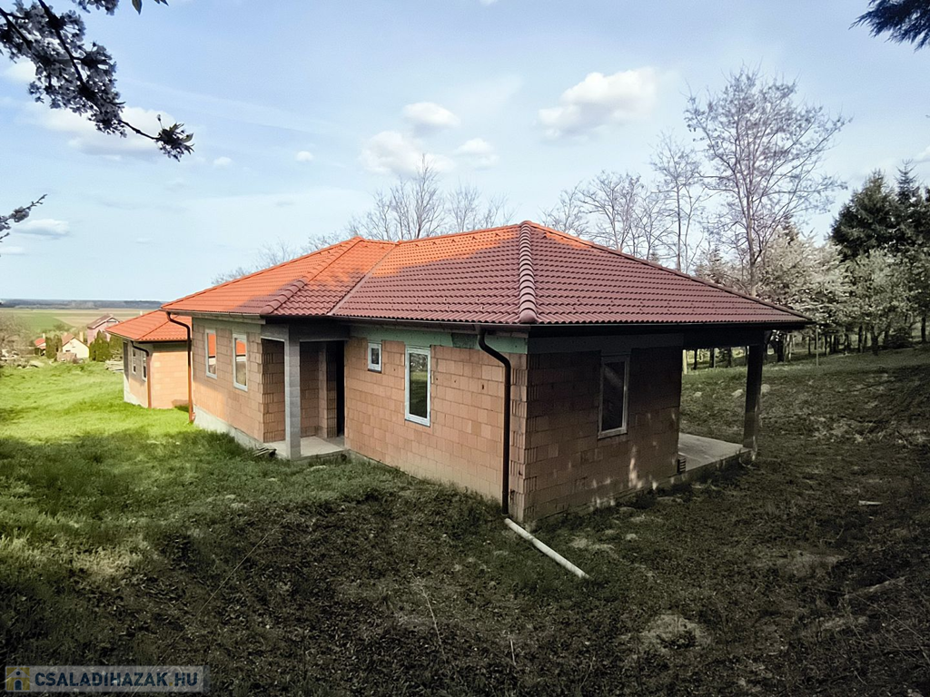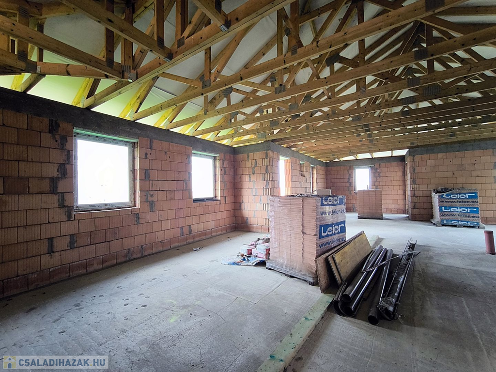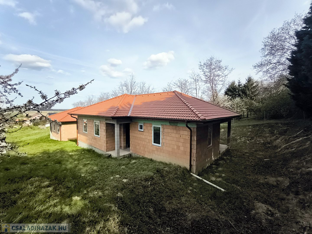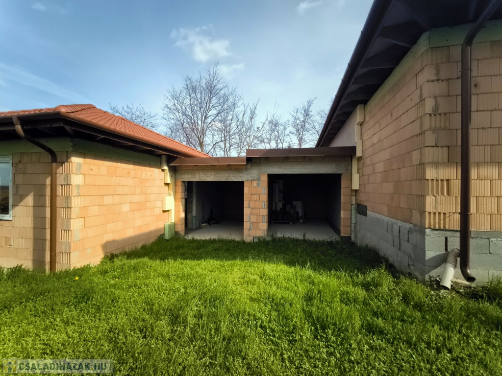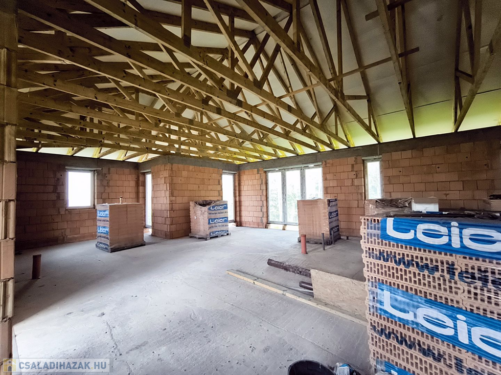 Győrújbarát csendes utcájában eladó egy épülő, energiatakarékos családi ház panorámás telekkel.