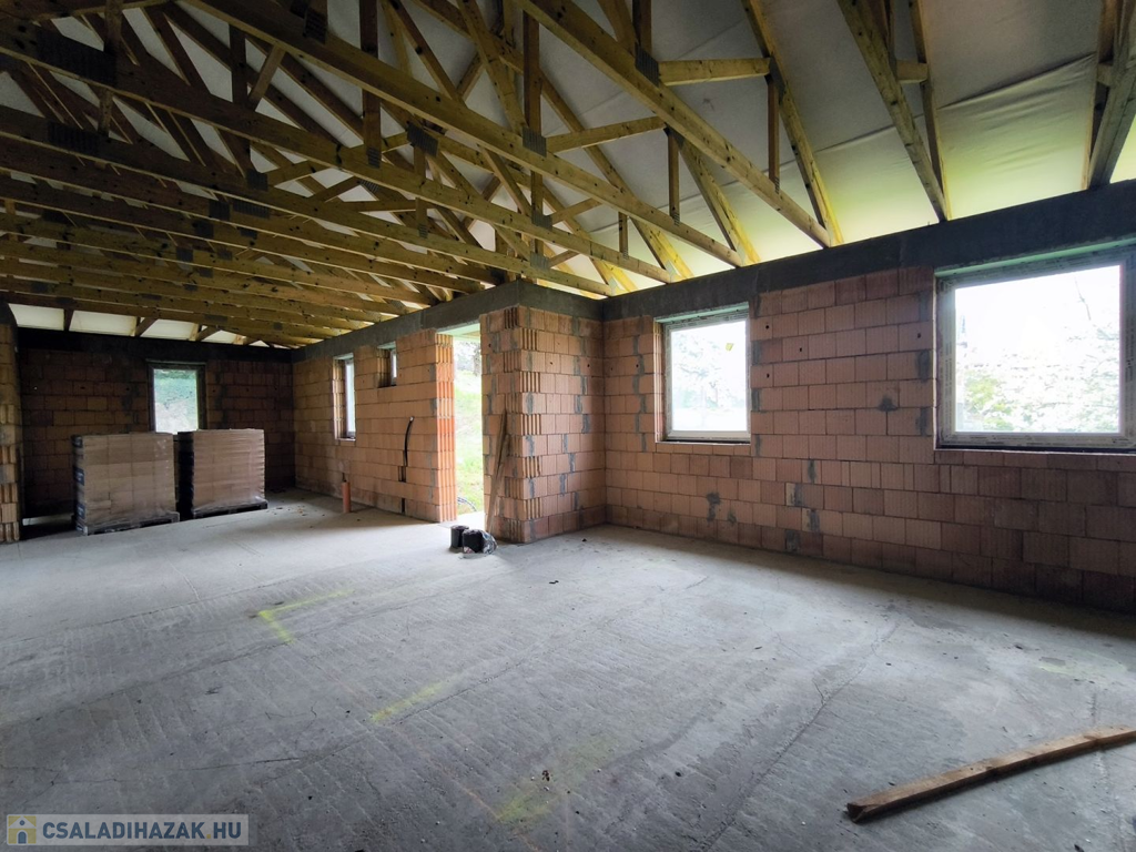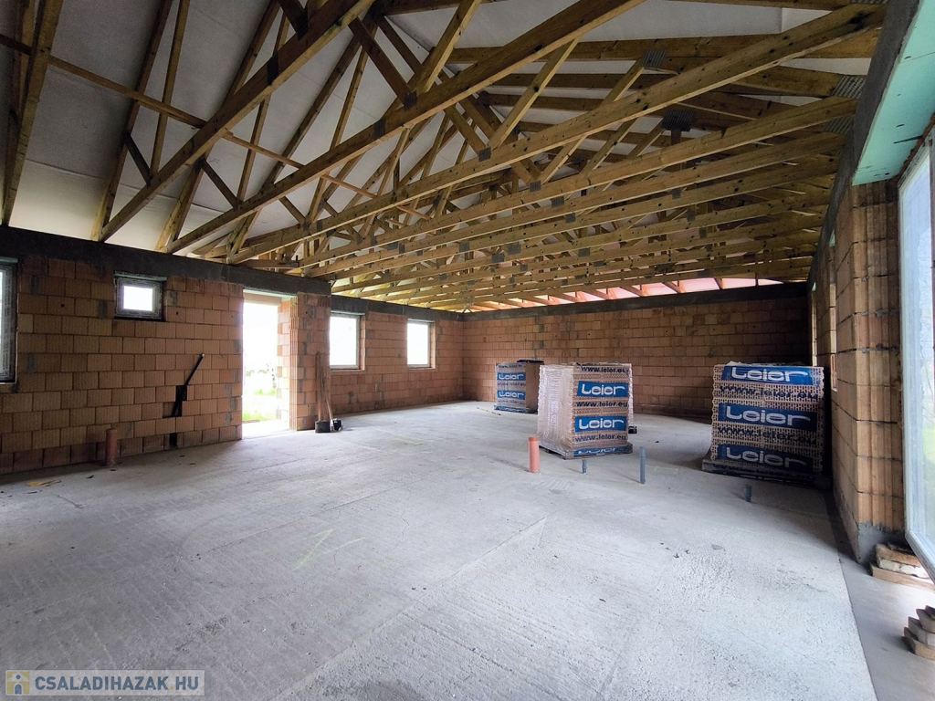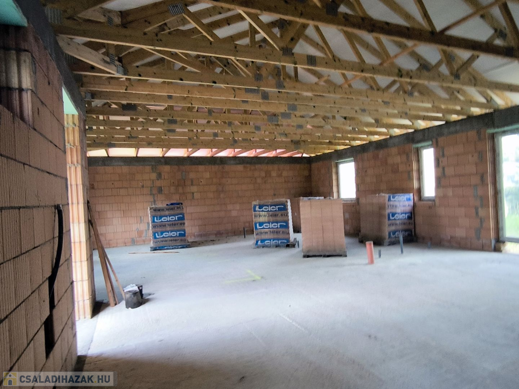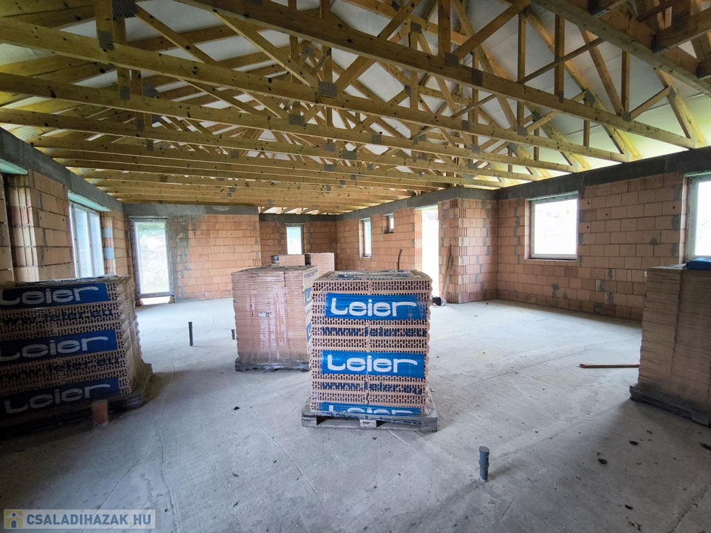 A ház már tető alatt van. A belső válaszfalak kialakításában figyelembe tudunk venni egyedi igényeket.