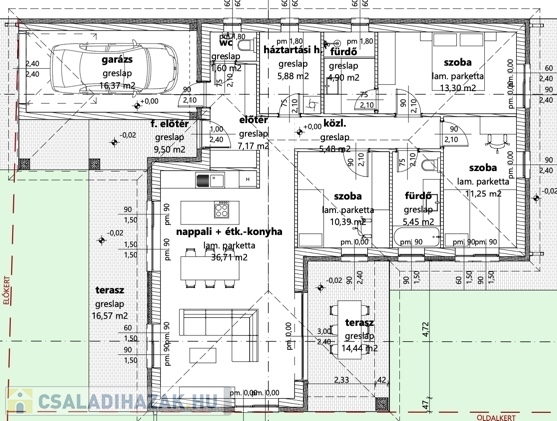Győrújbarát csendes, zöldövezeti részén, mégis a központhoz közel, 922 m²-es telekre épülő, 118,5 m² hasznos alapterülettel, 3 szoba + tágas nappali kialakítással, két fürdőszobával, valamint 14,44 és 16,57 m²-es terasszal és 16,37 m²-es garázzsal rendelkező, prémium minőségű, ÚJ ÉPÍTÉSŰ családi ház eladó.