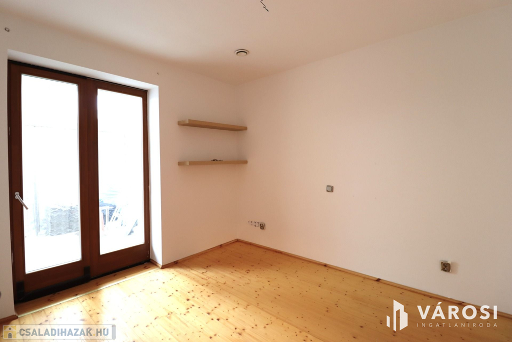 Hang- és hőszigetelt fa külső nyílászárók 3 rétegű üvegezéssel, belül minőségi fa beltéri ajtók.