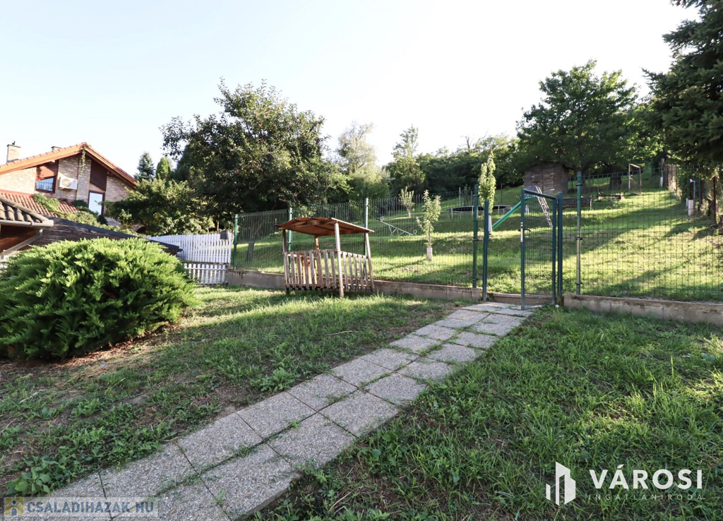 Csodás Panoráma, délnyugati fekvésű telek, 28 méter a telekszélesség, parkosított zöld környezet, jól megépített energiatakarékos kivitelezés mind jellemzi, emellett egy felújított vendégház is található a telken belül.