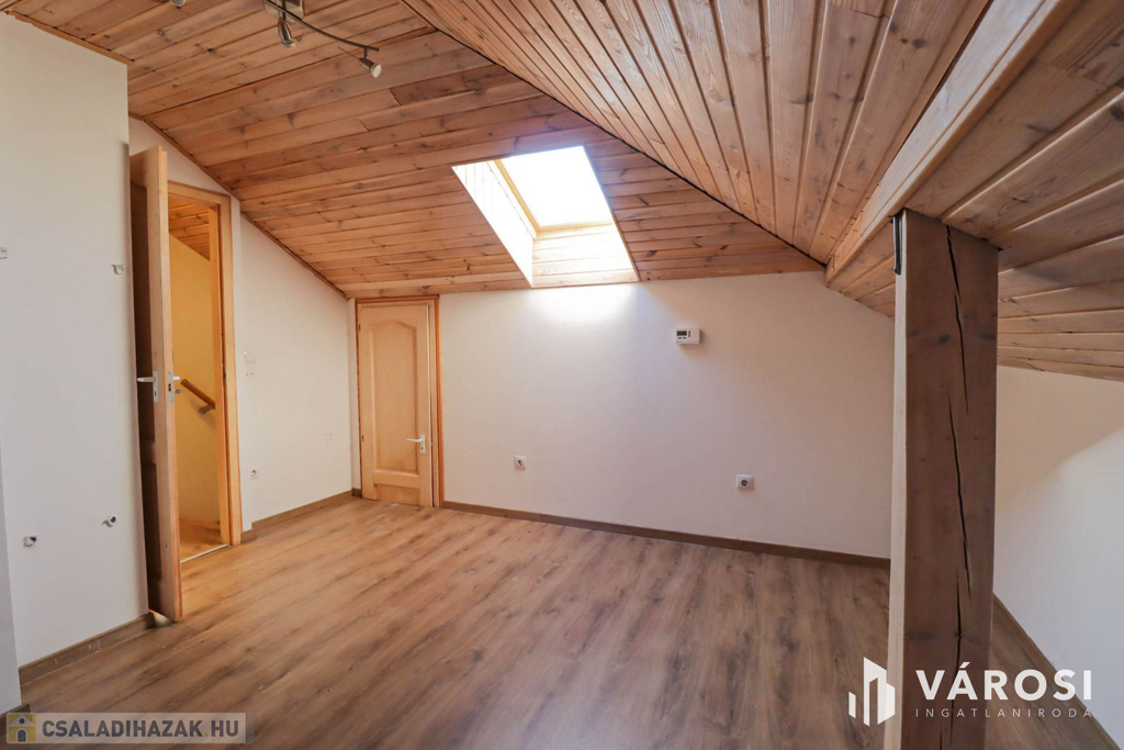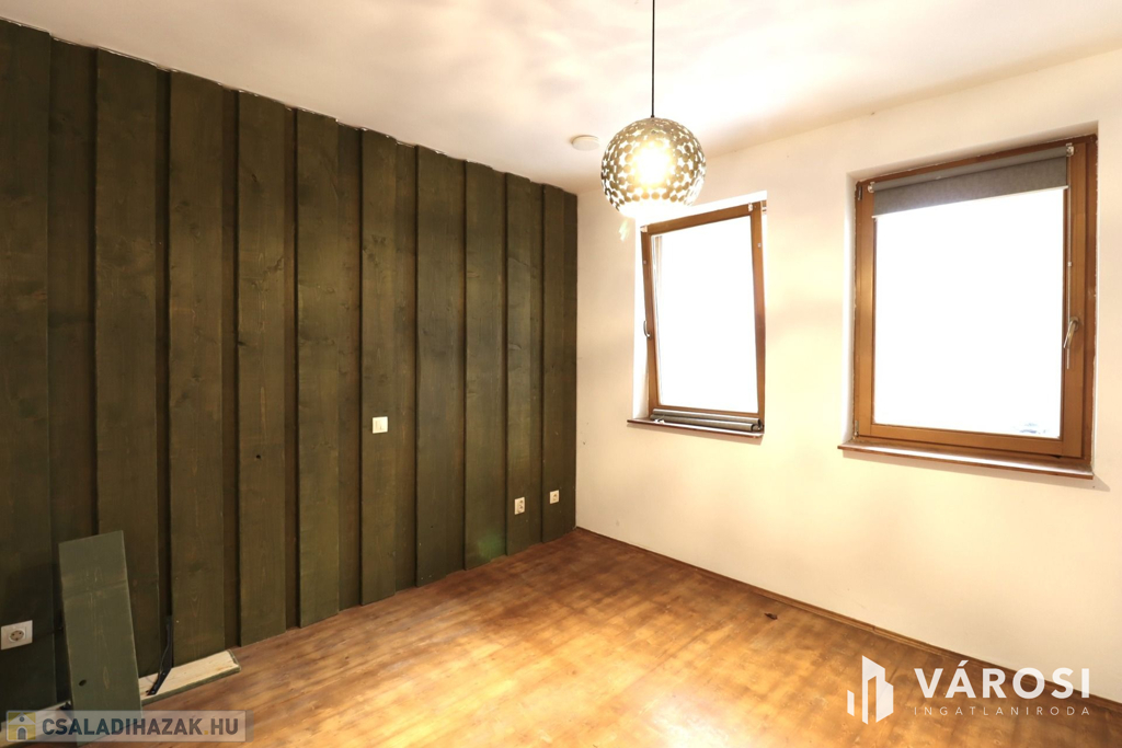 Az esztétikai felújítást igénylő ház földszinti és emeleti lakótere amerikai konyhás nappali + 6 szobából, 2 fürdőszoba és egyéb helyiségekből áll, így elegendő helyet biztosít nagycsaládosoknak vagy akár otthonról dolgozni vágyók számára.