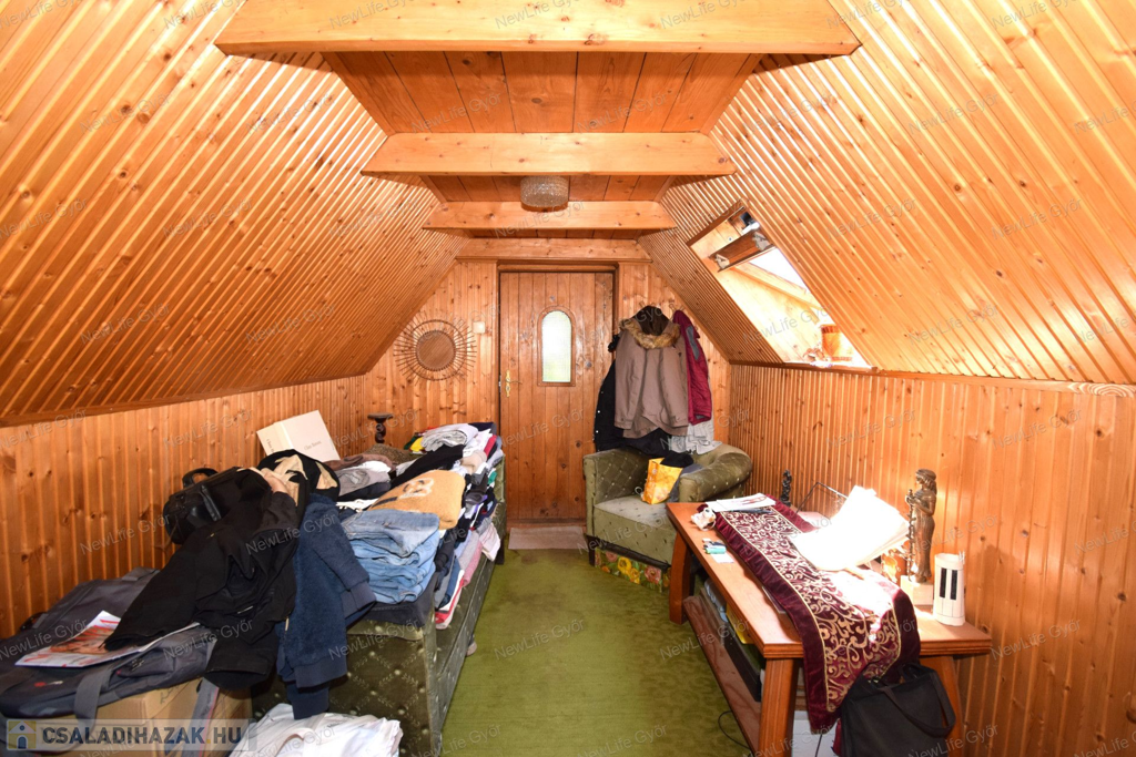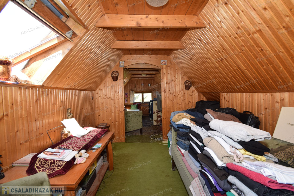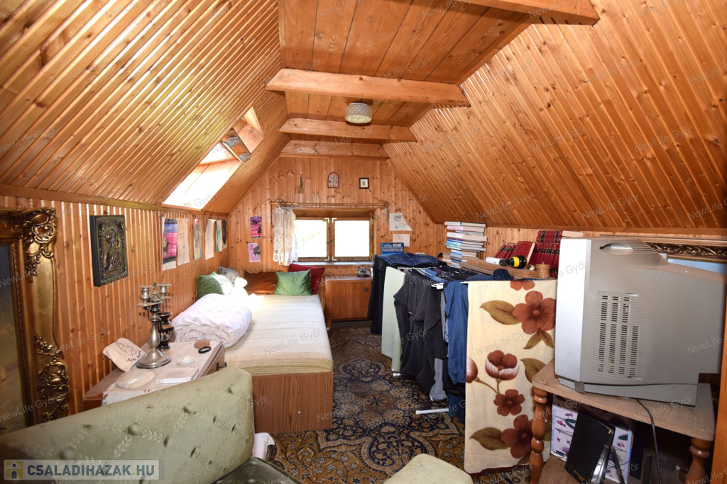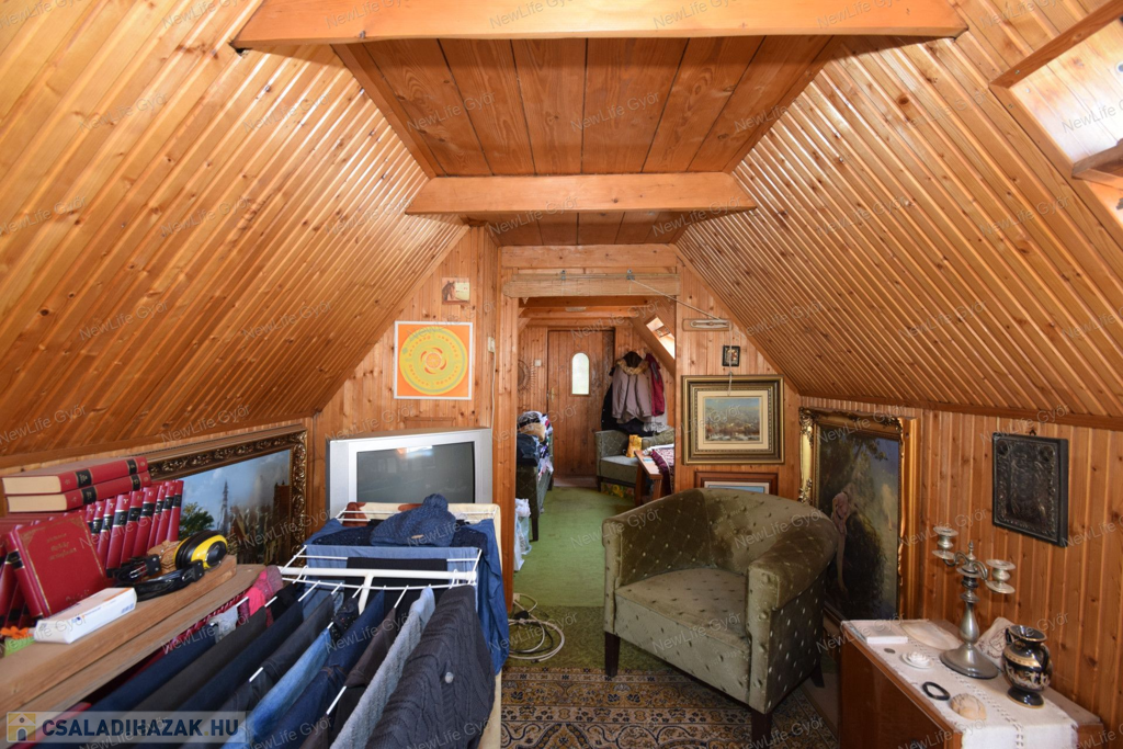 A tetőtérbe a ház hátsó részén található lépcsőn keresztül is feljuthatunk, ahol két – egymásból nyíló – teljes terjedelmében lambériázott hálószoba kapott helyet. Itt tetőtéri ablakok kerültek beépítésre.