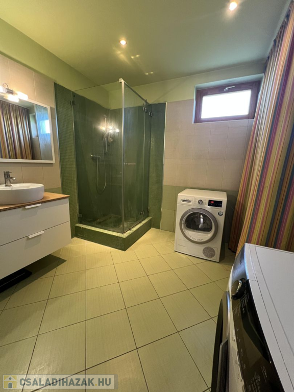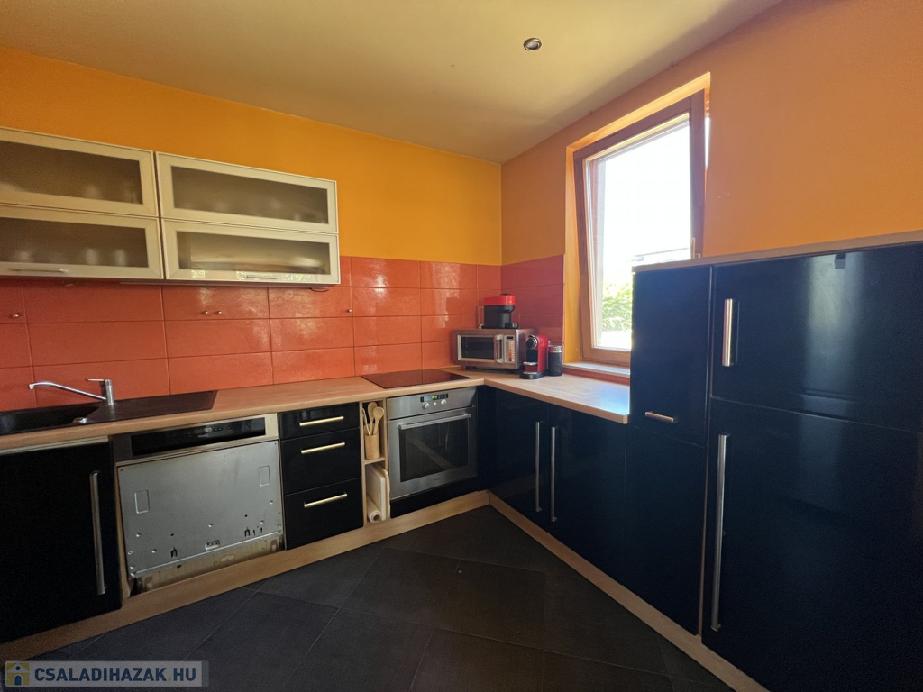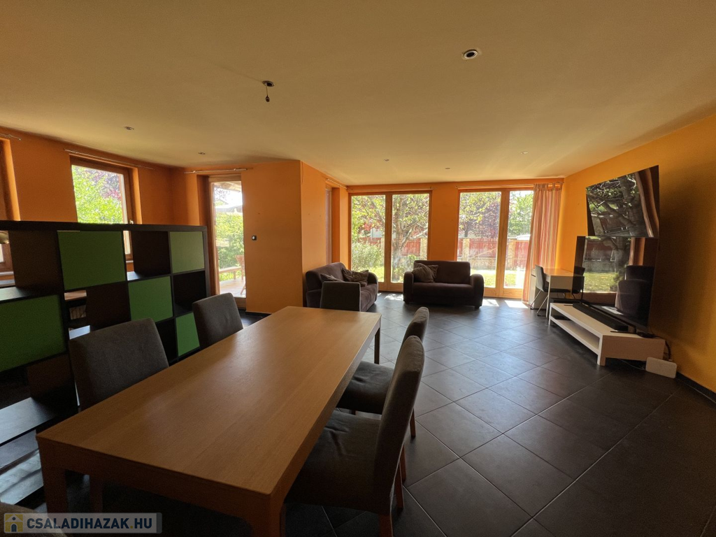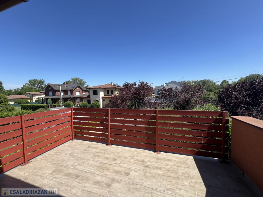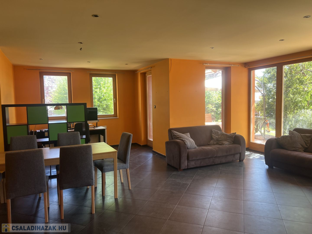 Győrújfalu rendkívül kedvelt részén, újszerű családi házak környezetében, Győr városától alig 5 perces autótávolságra, 425 m2-es, részben térkövezett, parkosított, automata öntözőrendszerrel, fúrt kúttal ellátott saroktelken, 2008 - ban épült, kiváló alaprajzi elrendezésű bruttó 193 nettó 156 m2-es, minőségi anyagokból kivitelezett, 4 szoba + nappalis, 2 fürdőszobás, ikres építési móddal épült családi ház eladó.