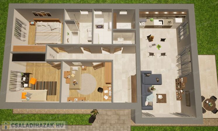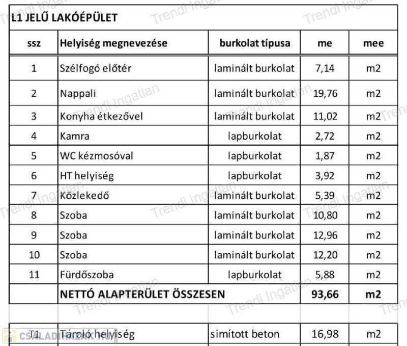 Az ingatlanban amerikai konyhás nappali, 3 szoba, fürdőszoba, külön WC, kamra, háztartási helyiség, közlekedő, előtér található. A házhoz 16,98 nm-es tároló tartozik. A két ingatlan külön megközelíthető, a házakat csak a tárolók kötik össze.
